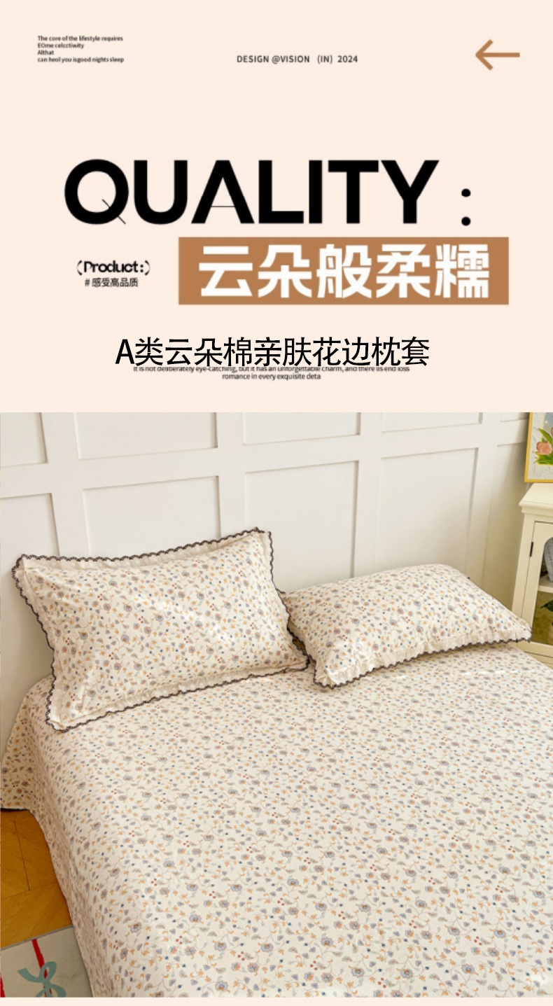 • 91家纺网 家纺一手货源 找家纺 圣比熊 2026新款A类云朵棉蕾丝花边枕套宿舍单人单只一只装枕芯内胆套 花蔓清风(单层蕾丝花边)