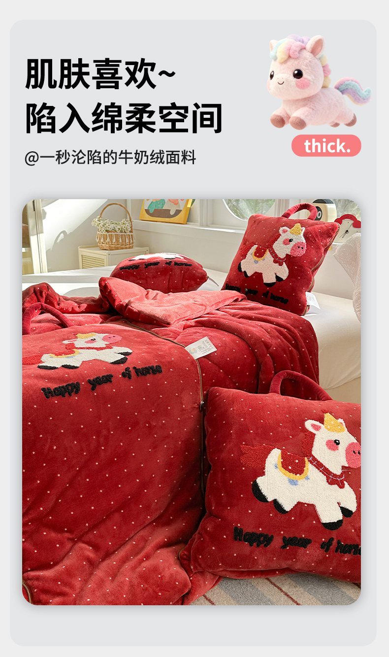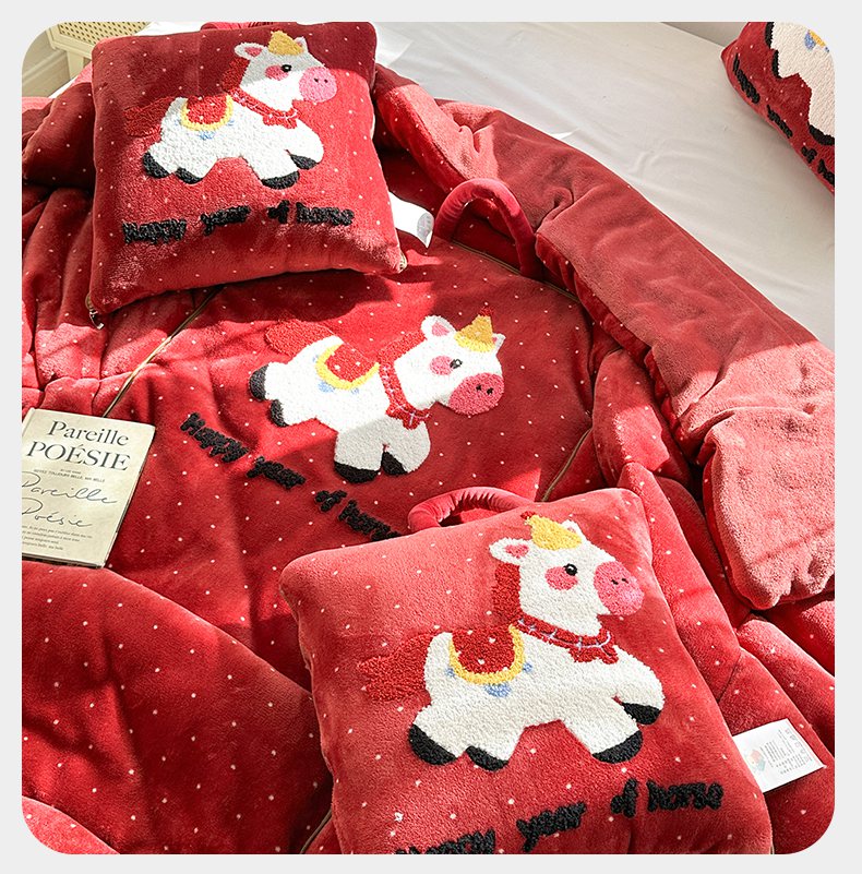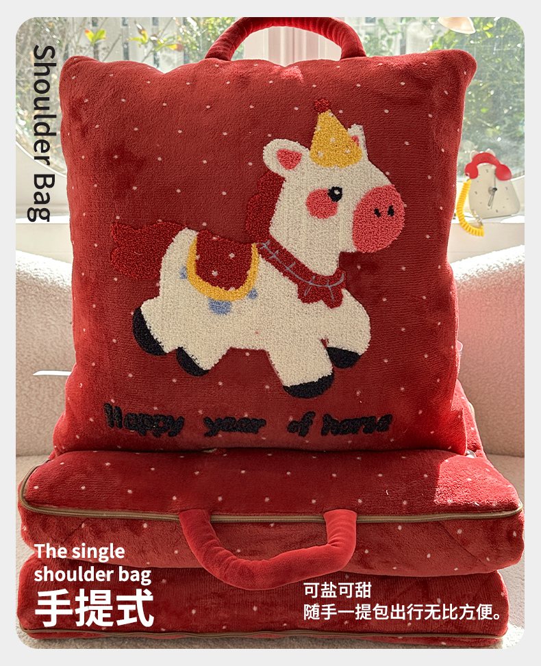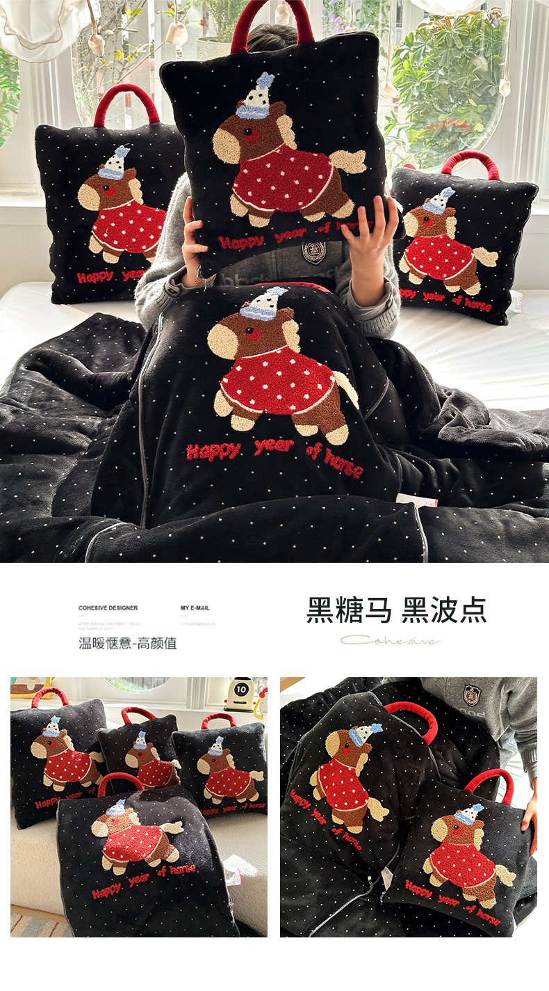 商品名称:古本家居 2026新款牛奶绒小马家族抱枕被 鸿运马-红波点