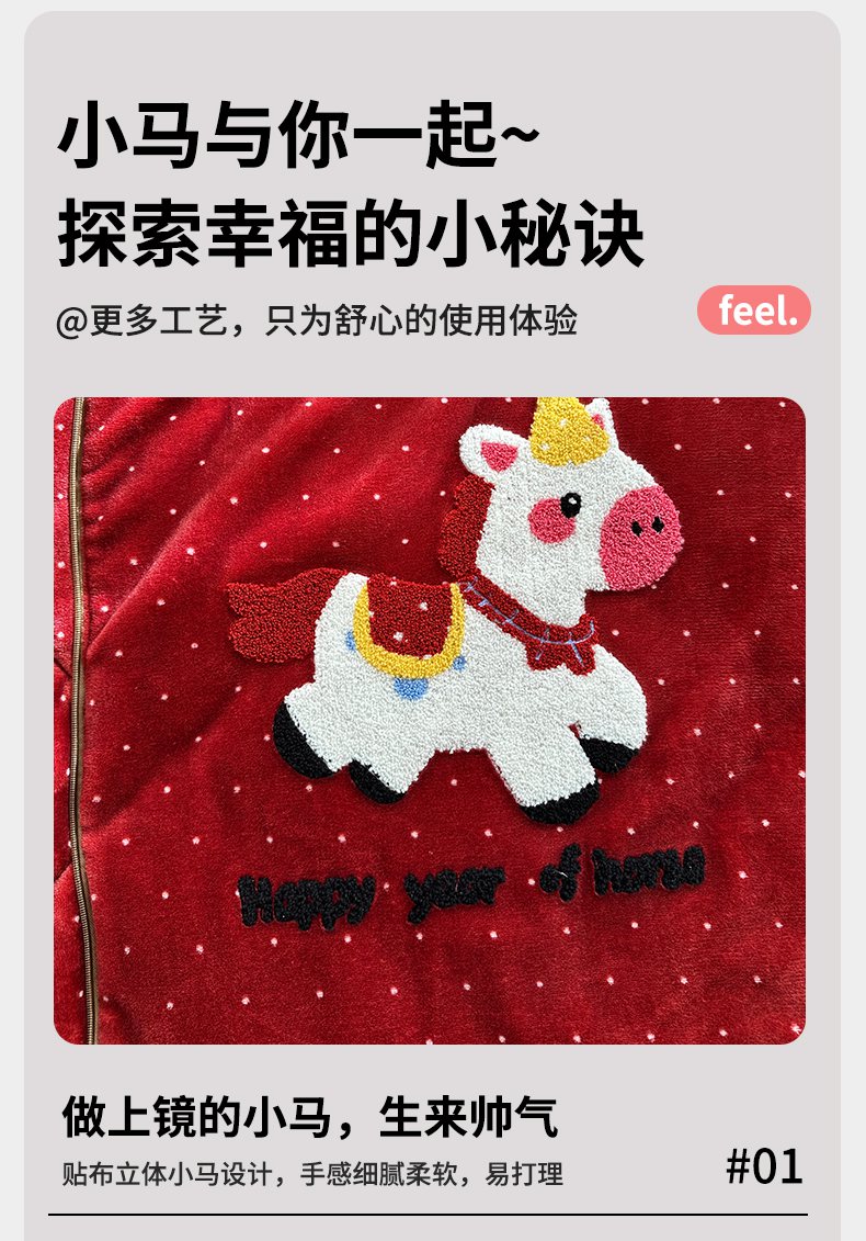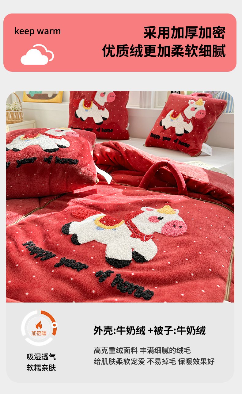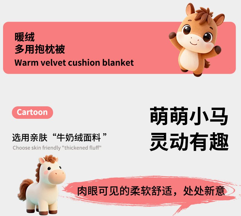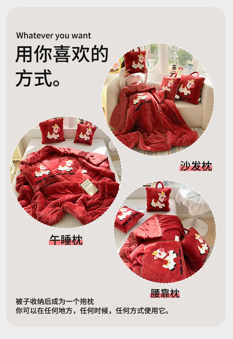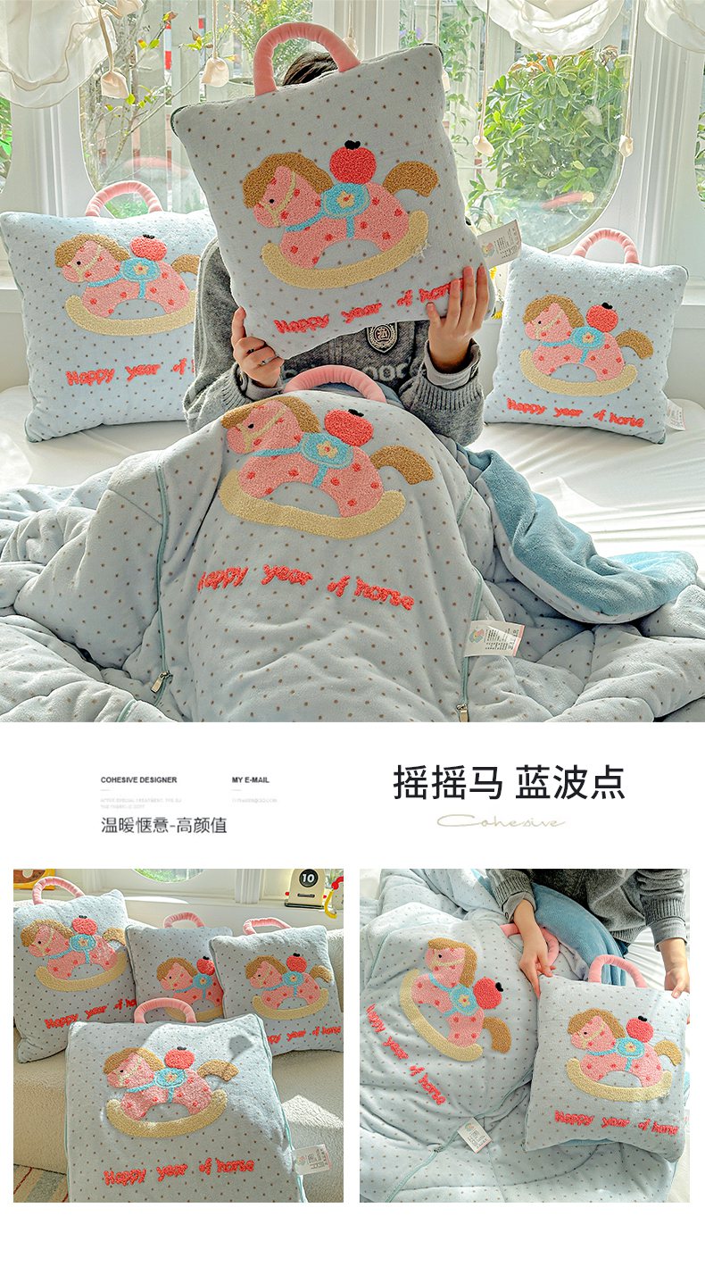商品名称:古本家居 2026新款牛奶绒小马家族抱枕被 鸿运马-红波点