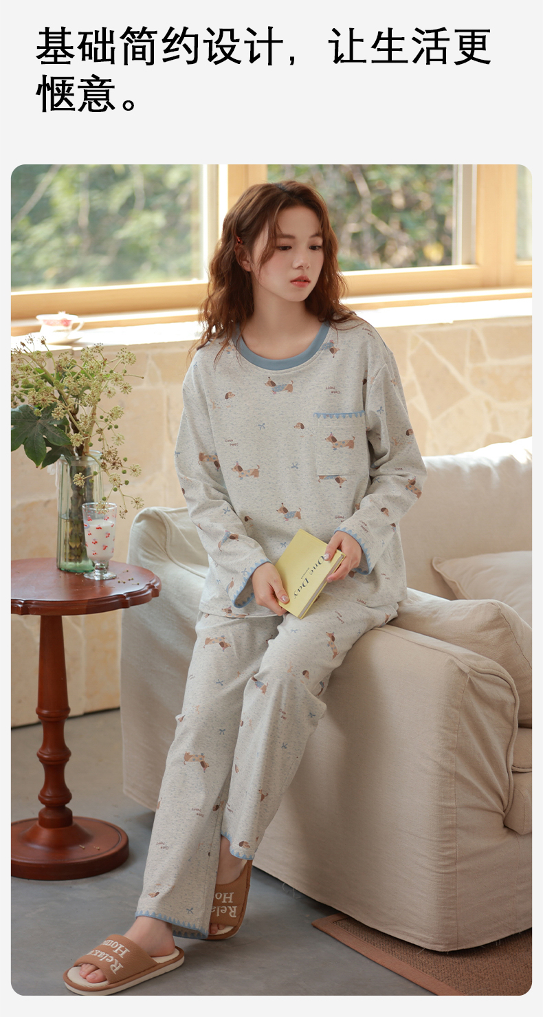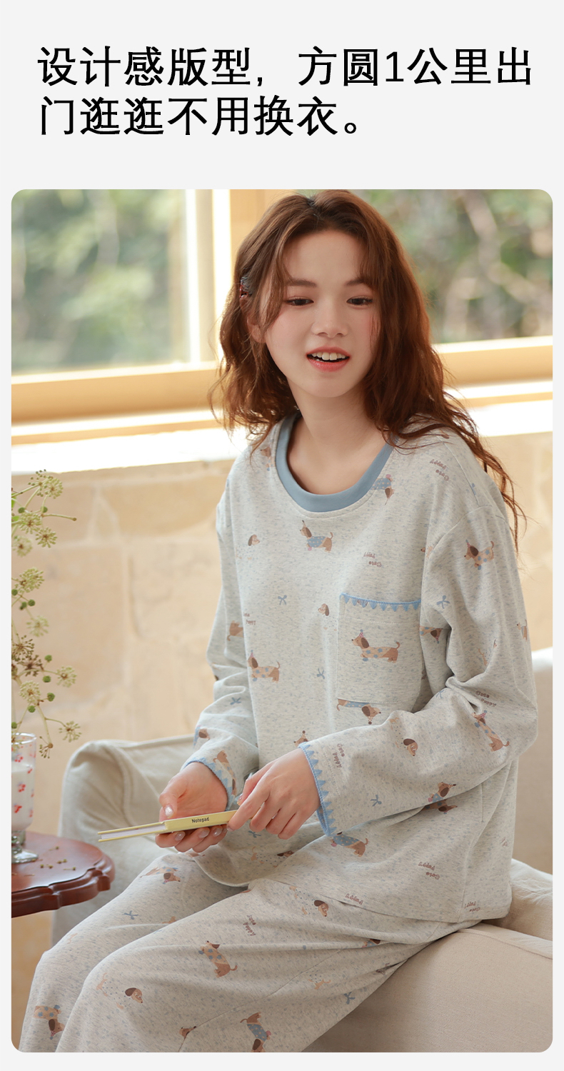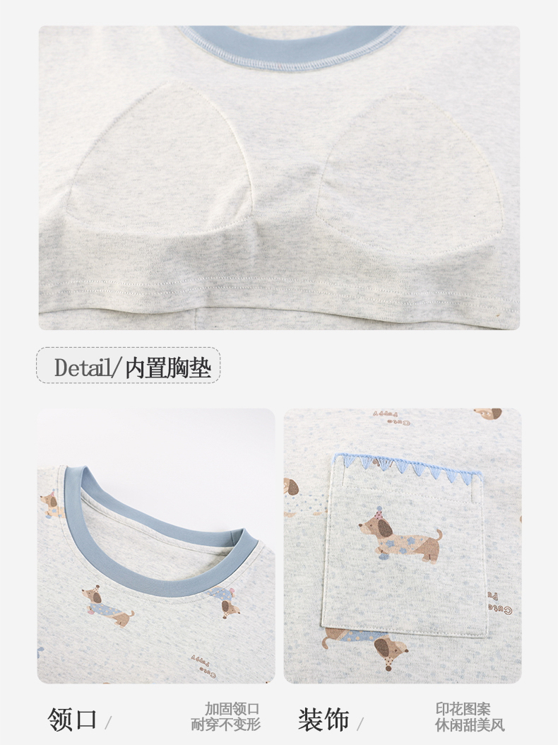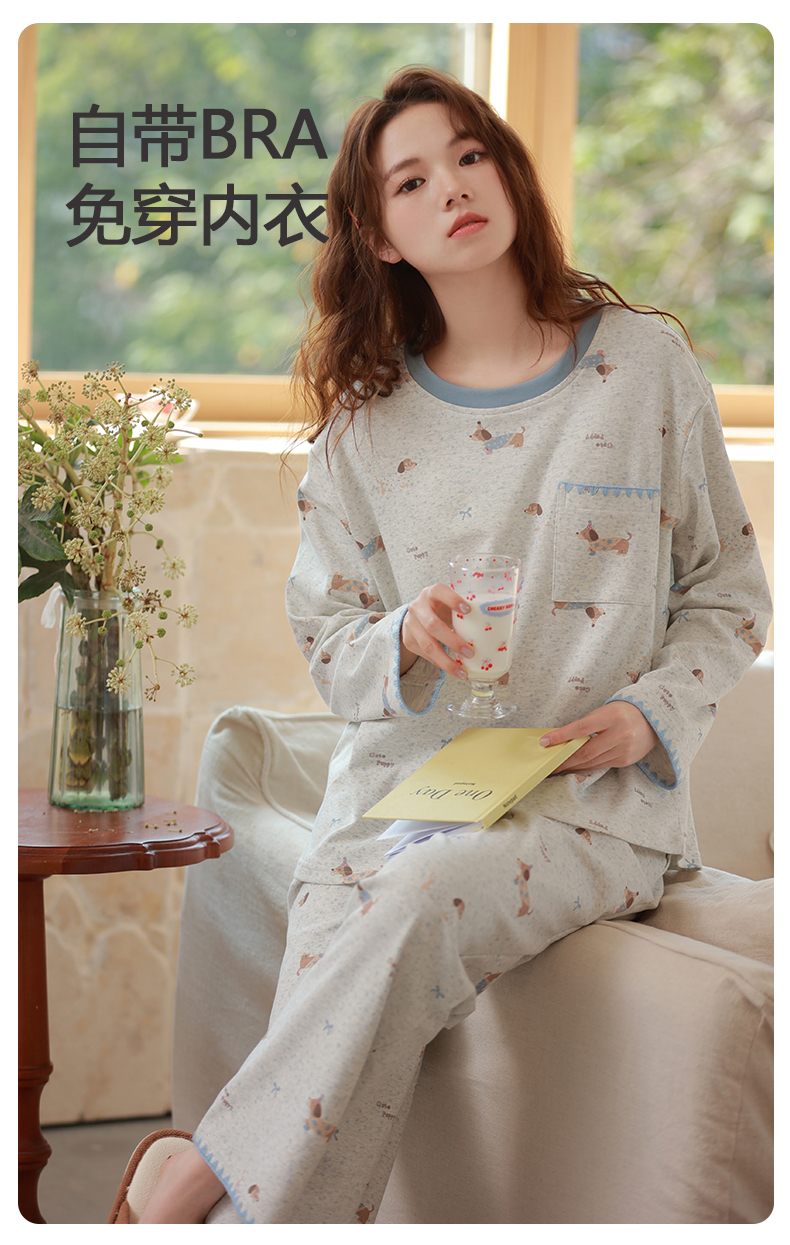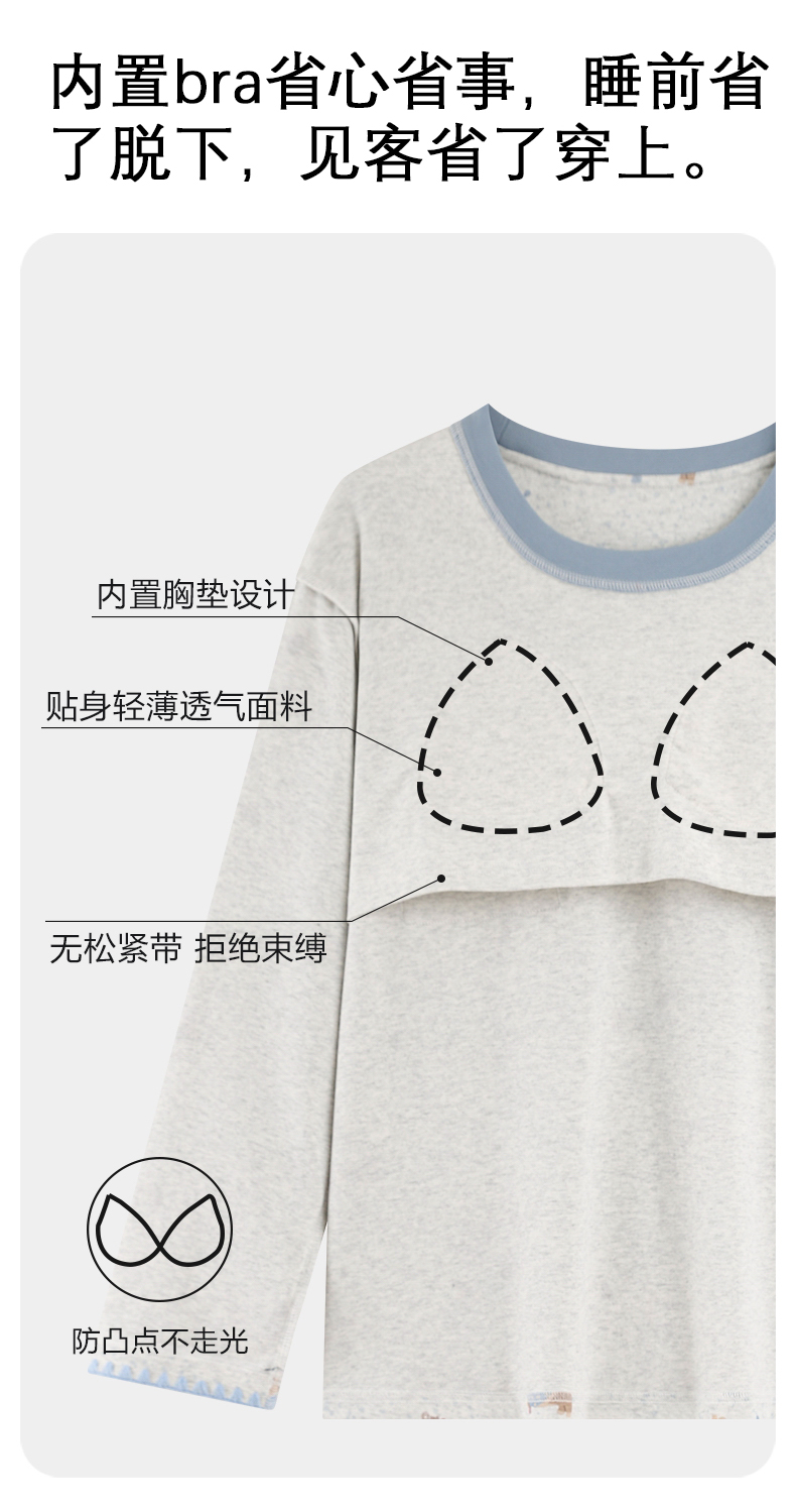 商品名称:洛兰沙家居馆 2026春季新款自带胸垫纯棉居家睡衣女长袖套头可爱家居服套装 第一批 31083