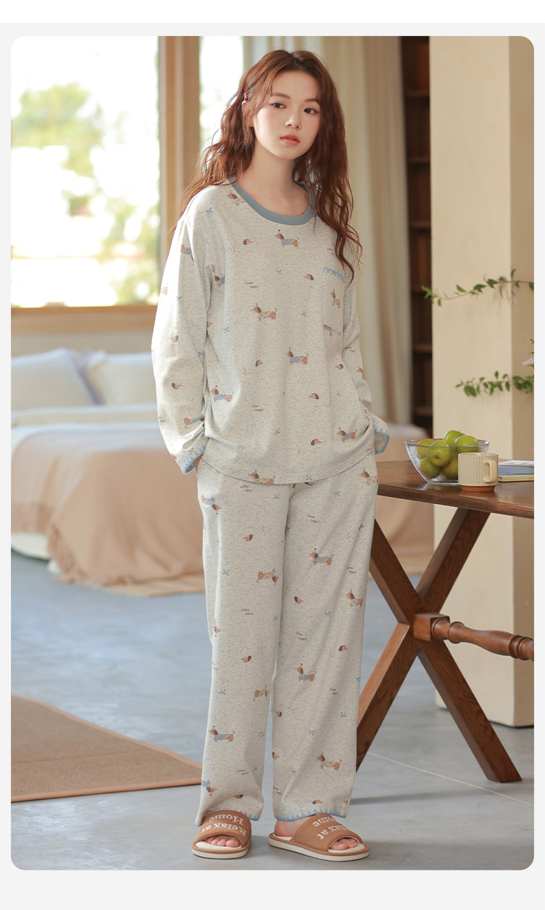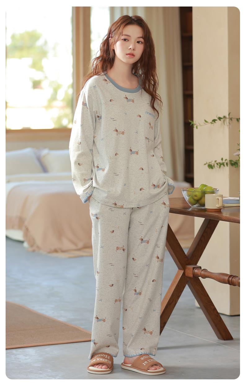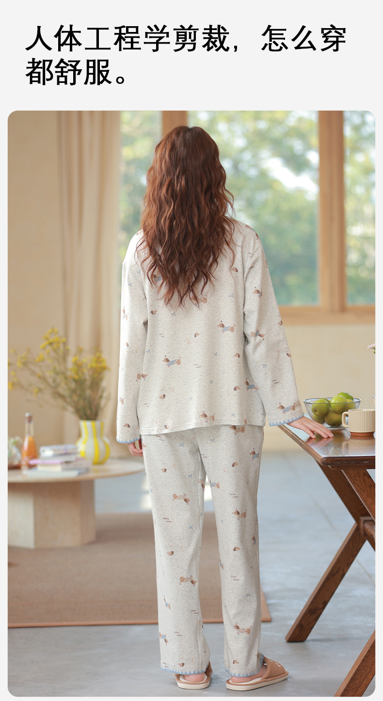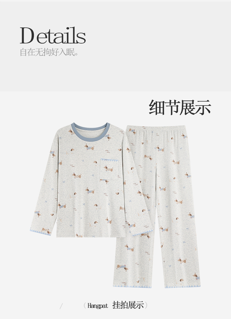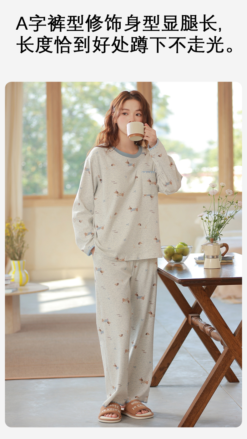 商品名称:洛兰沙家居馆 2026春季新款自带胸垫纯棉居家睡衣女长袖套头可爱家居服套装 第一批 31083