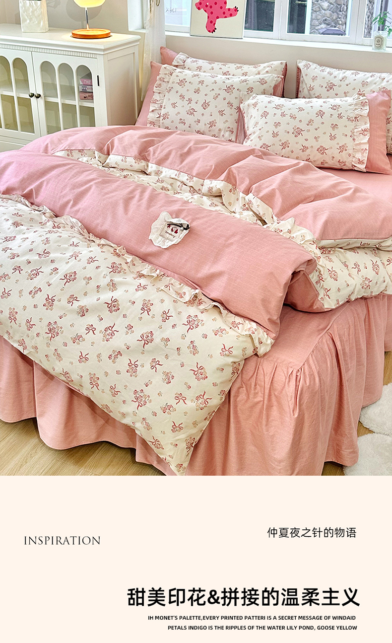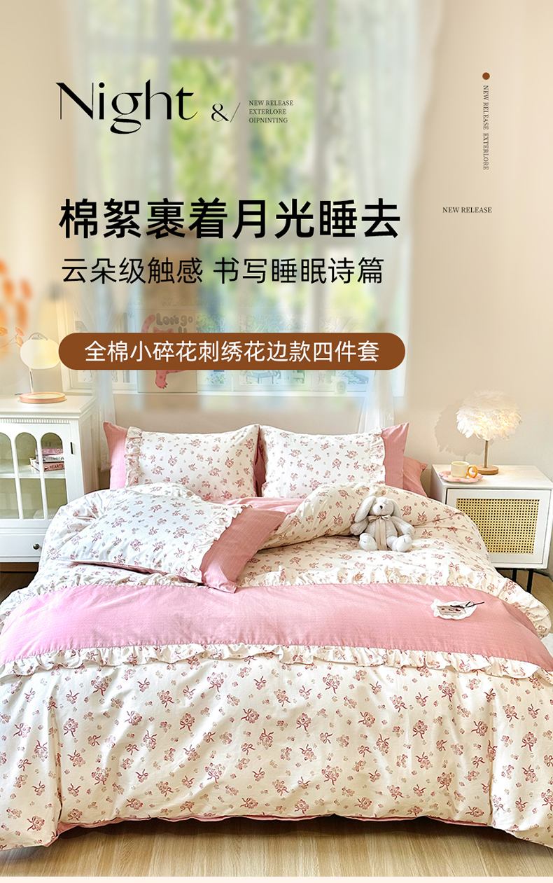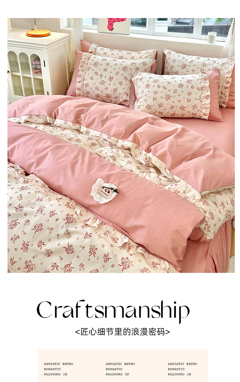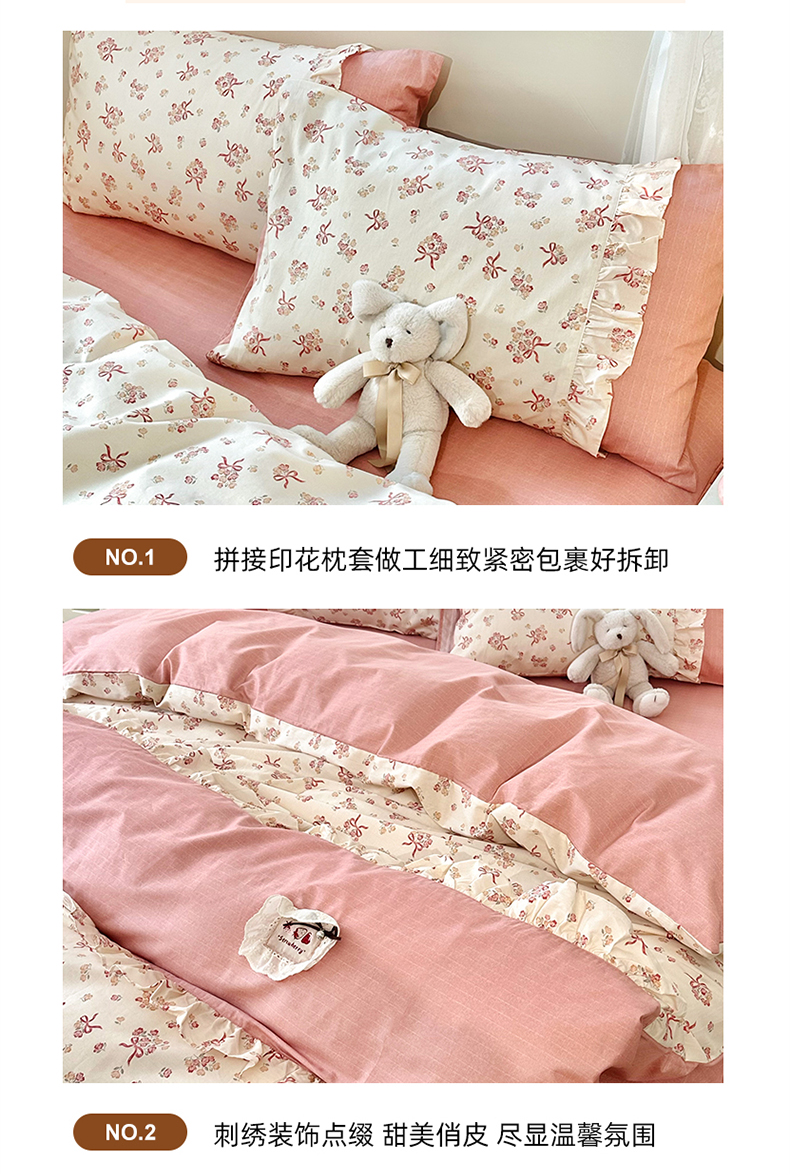 商品名称:玉元坊 2026新款全棉纯棉小碎花刺绣花边款四件套田园公主风系列 花漾结缘