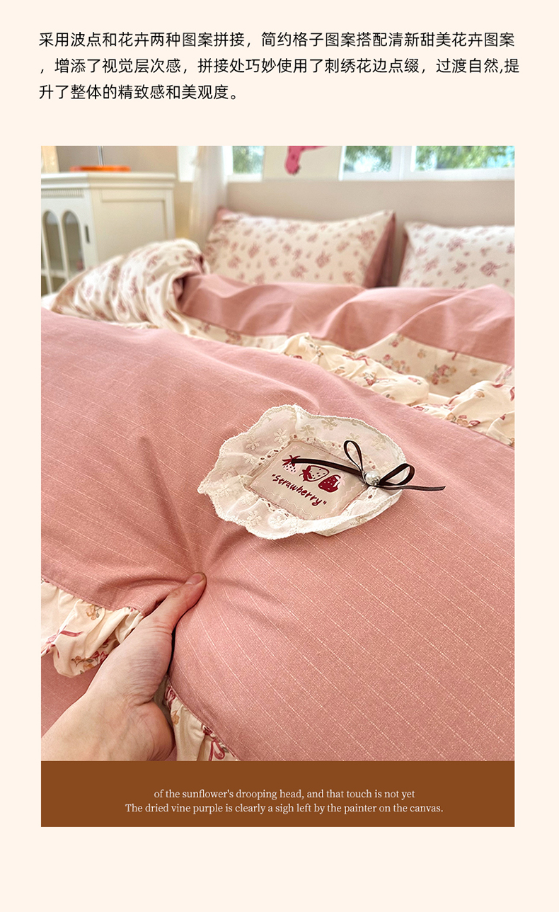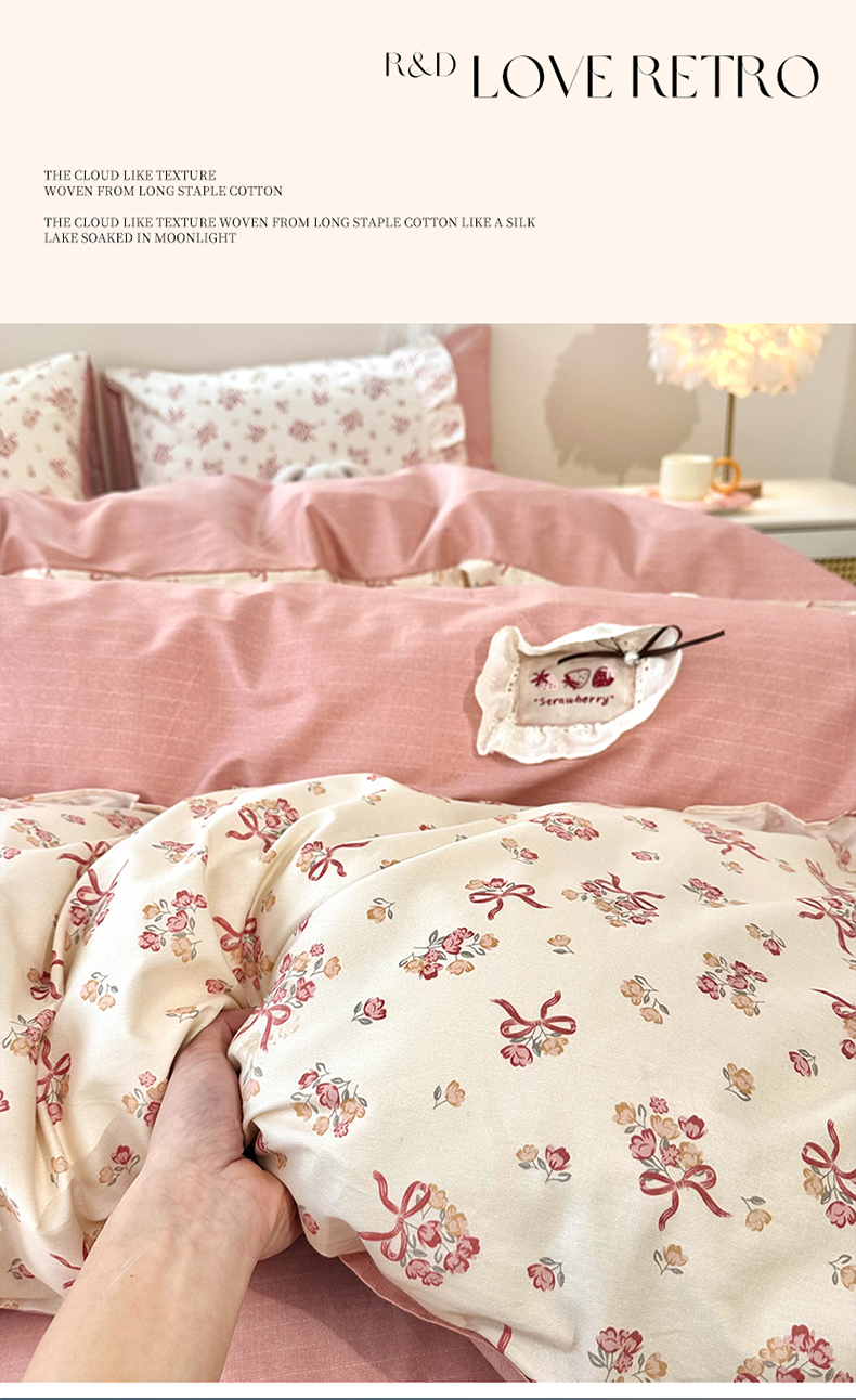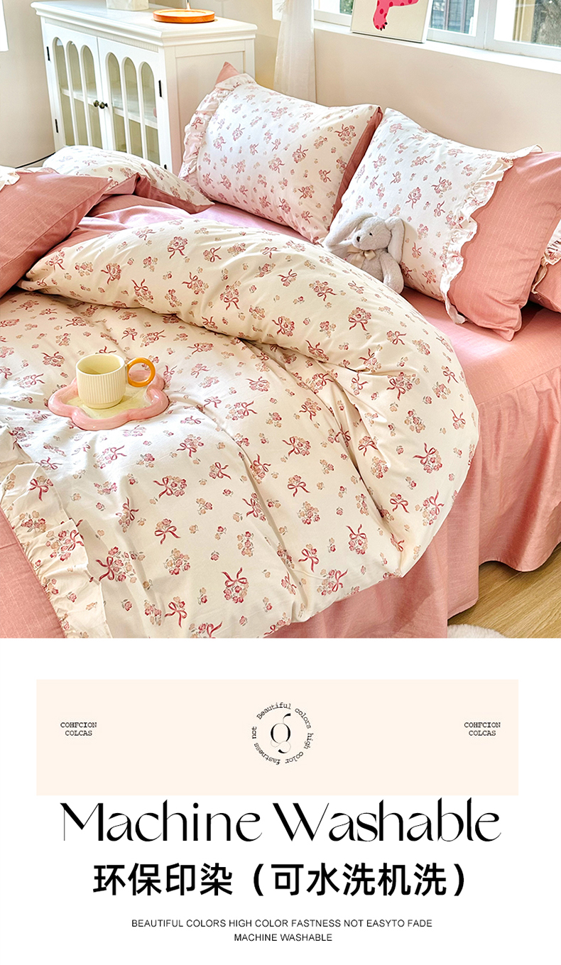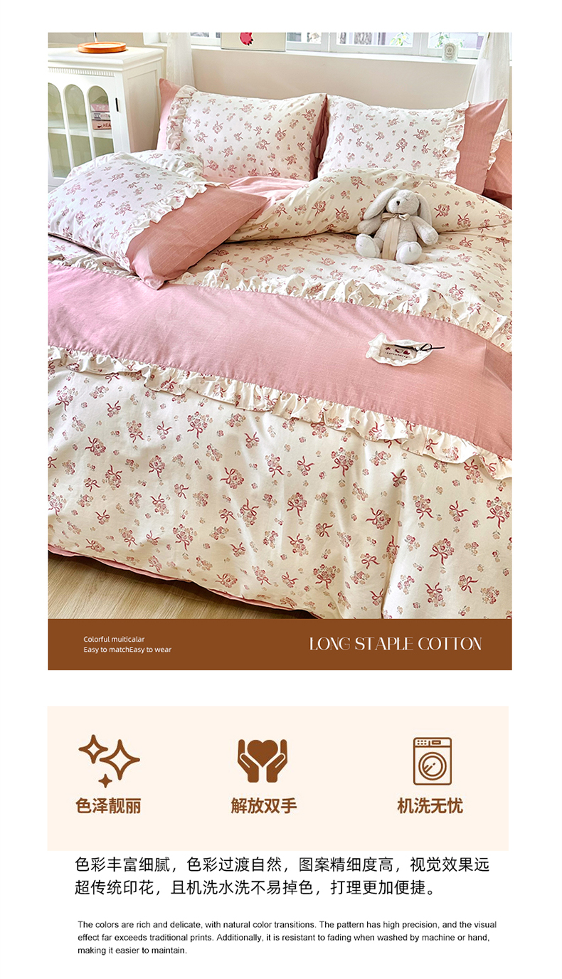 商品名称:玉元坊 2026新款全棉纯棉小碎花刺绣花边款四件套田园公主风系列 花漾结缘