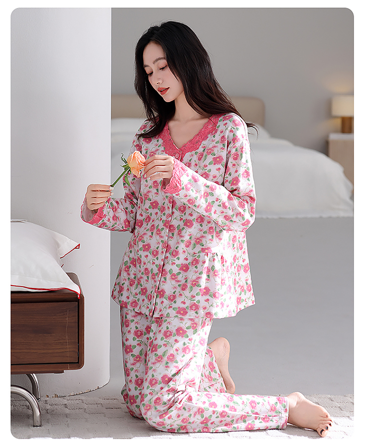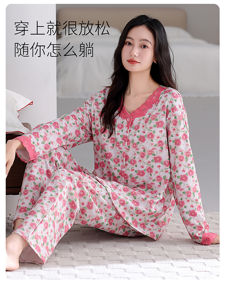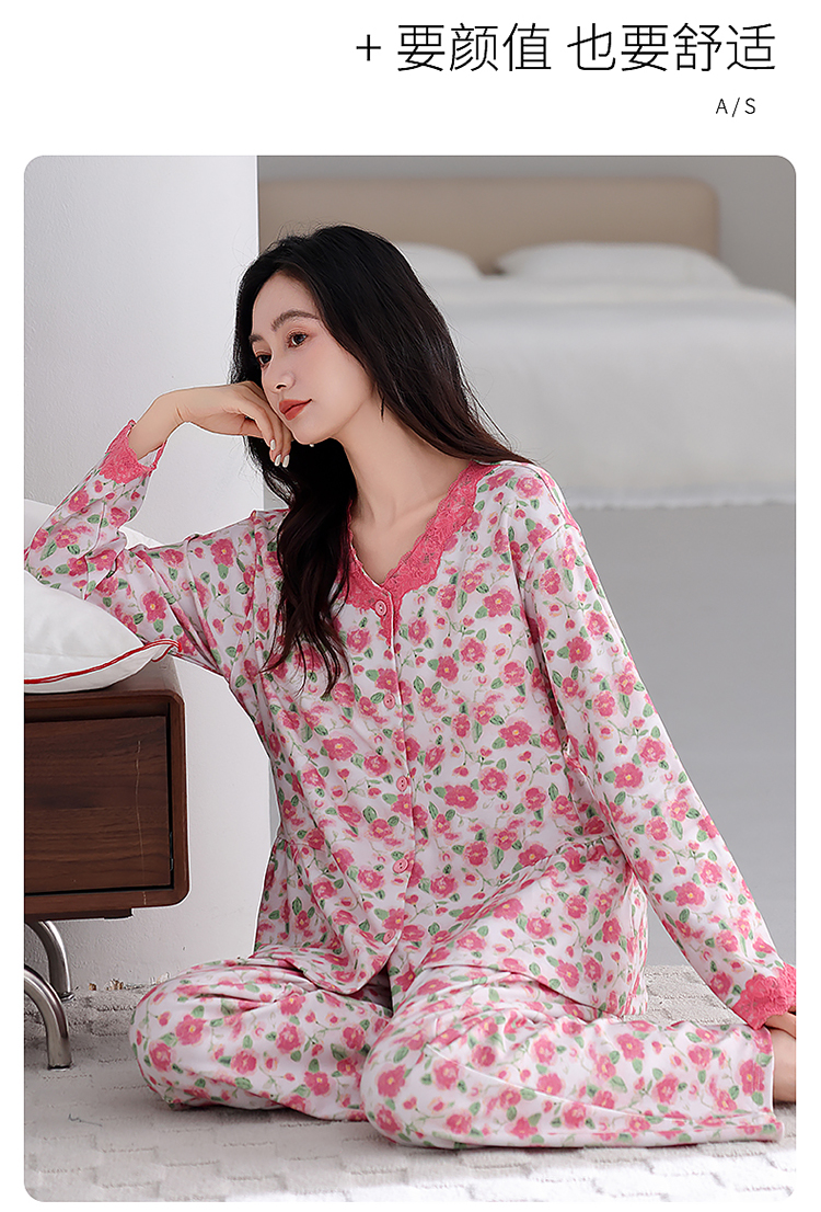 (总)洛兰沙家居馆 2026新款长袖睡衣女款纯棉春季印花开衫翻领家居服可外穿套装 第二批,45145,45146,45147