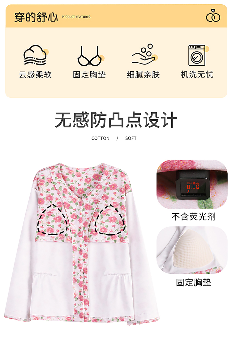 (总)洛兰沙家居馆 2026春季新款自带胸垫纯棉居家睡衣女长袖套头可爱家居服套装 第二批,31086,31087,31088,31089