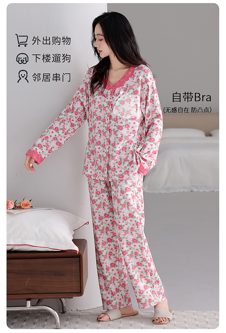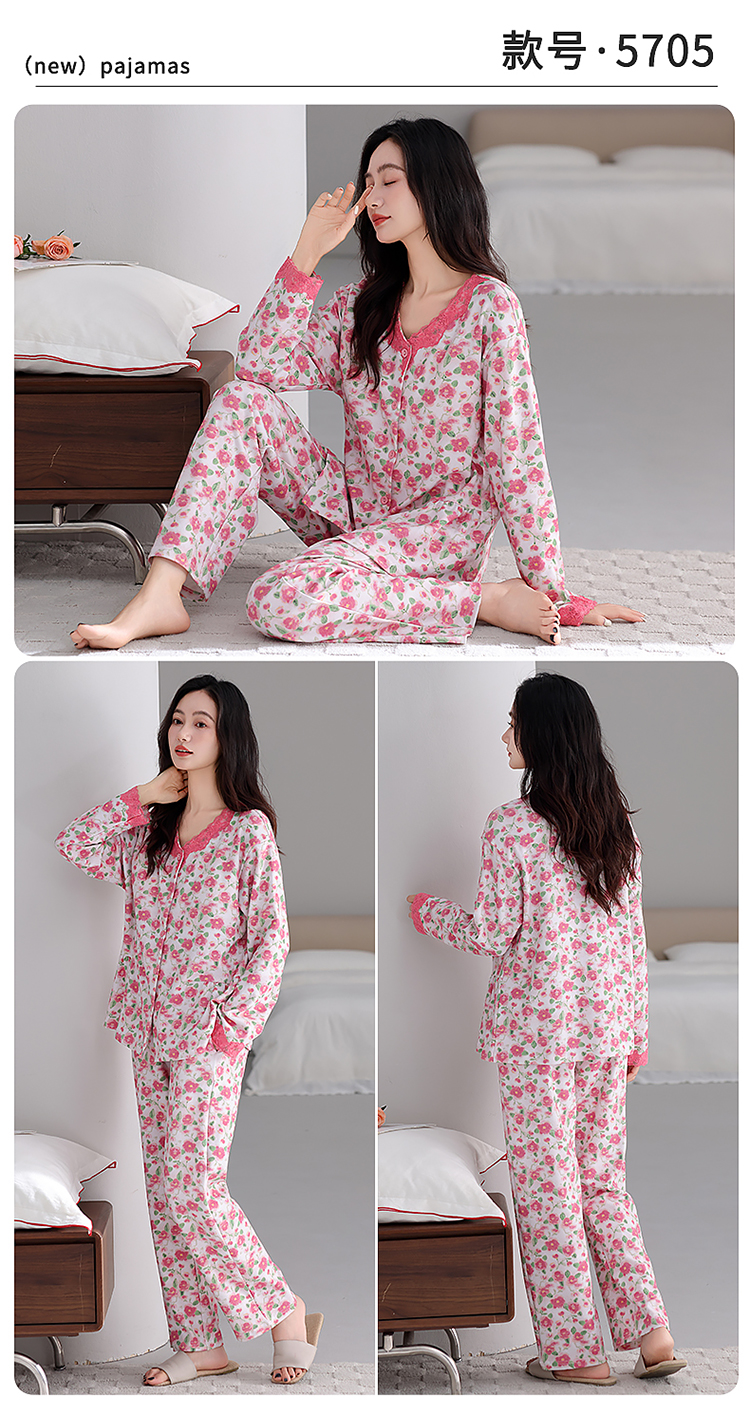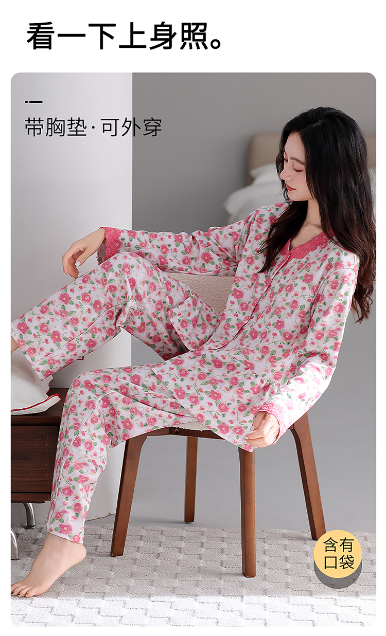 商品名称:洛兰沙家居馆 2026新款拉架爽棉睡衣女士秋冬季长袖长裤高级感休闲外穿家居服女款带胸垫 5705