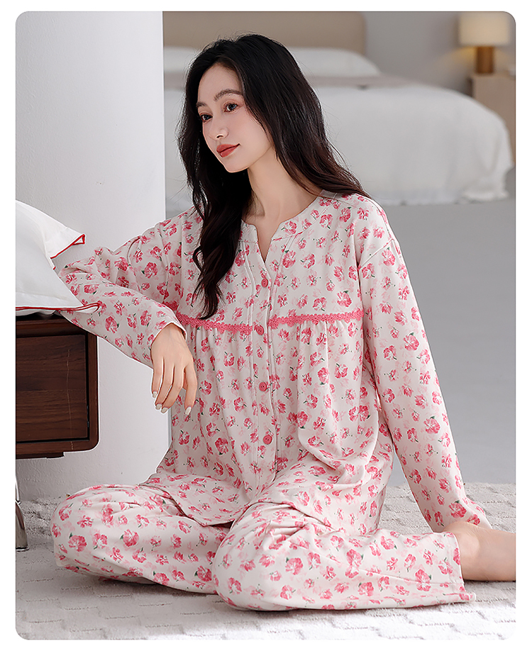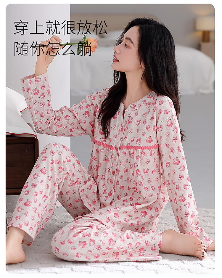(总)洛兰沙家居馆 2026新款长袖睡衣女款纯棉春季印花开衫翻领家居服可外穿套装 第二批,45145,45146,45147