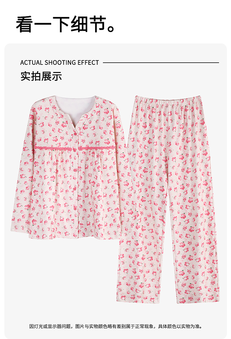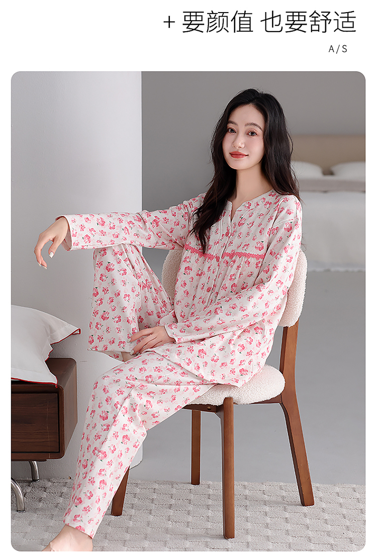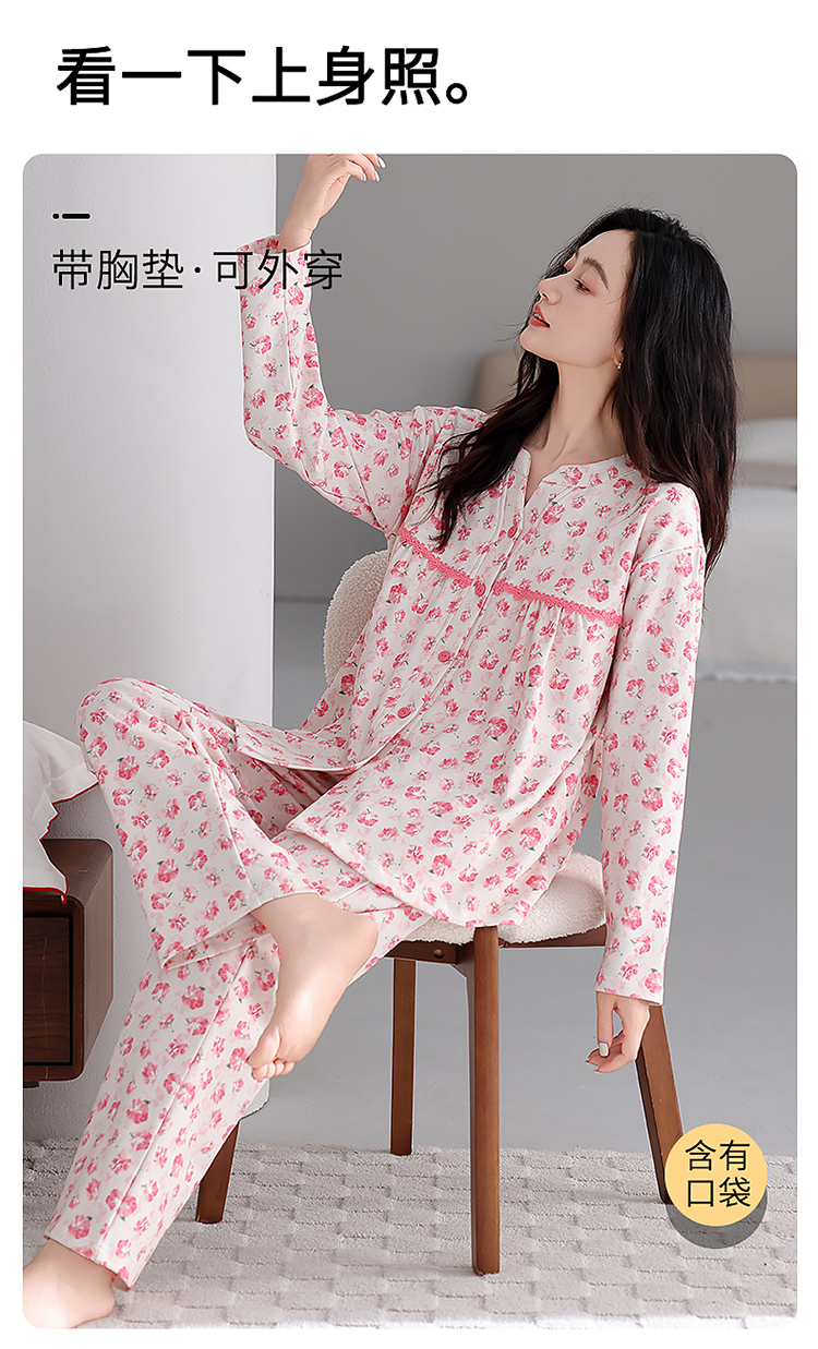 商品名称:洛兰沙家居馆 2026新款秋冬睡衣女拉架棉带胸垫可外穿长袖长裤青中年女士家居服套装第12批 5903