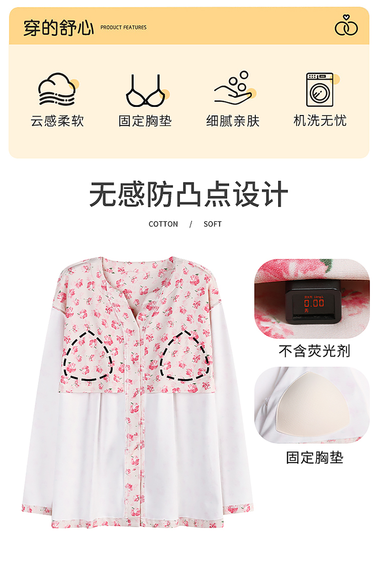 (总)洛兰沙家居馆 2026春季新款自带胸垫纯棉居家睡衣女长袖套头可爱家居服套装 第二批,31086,31087,31088,31089