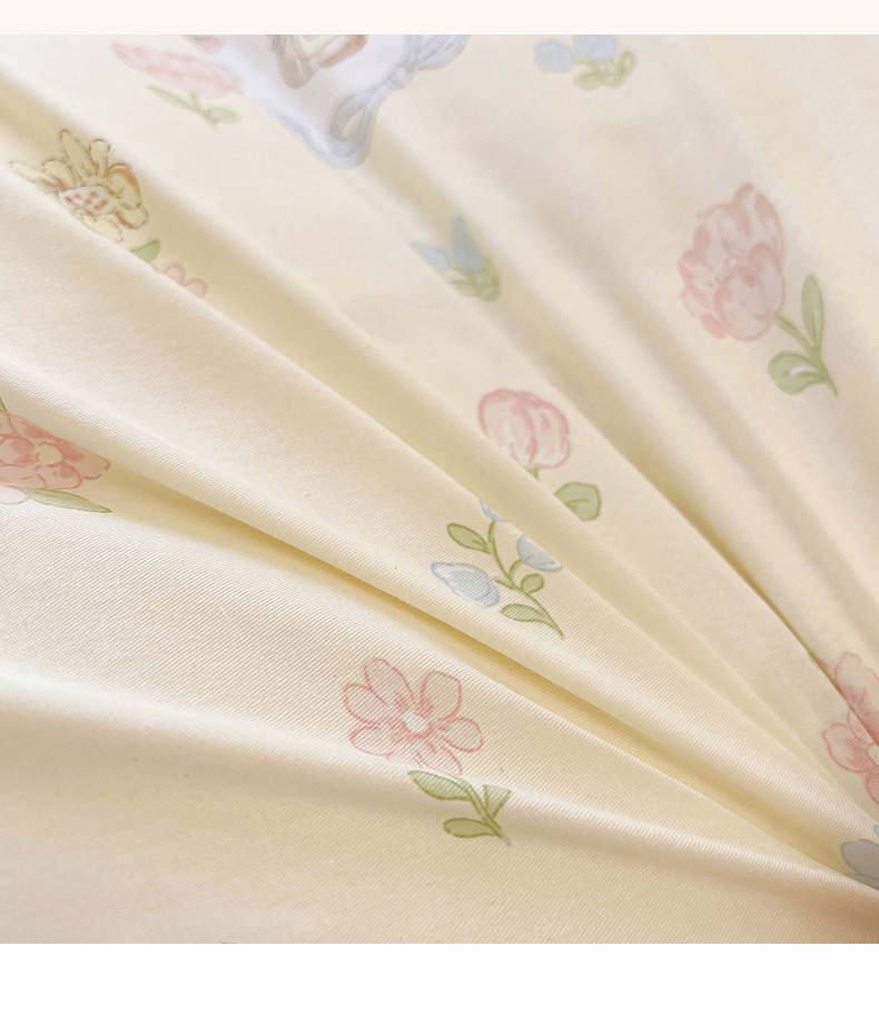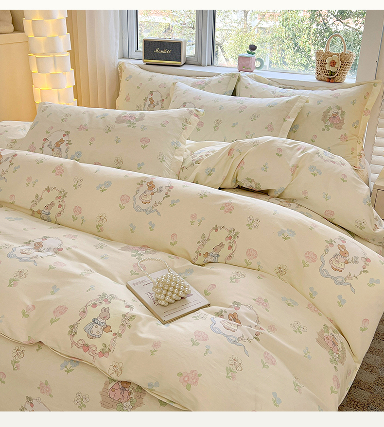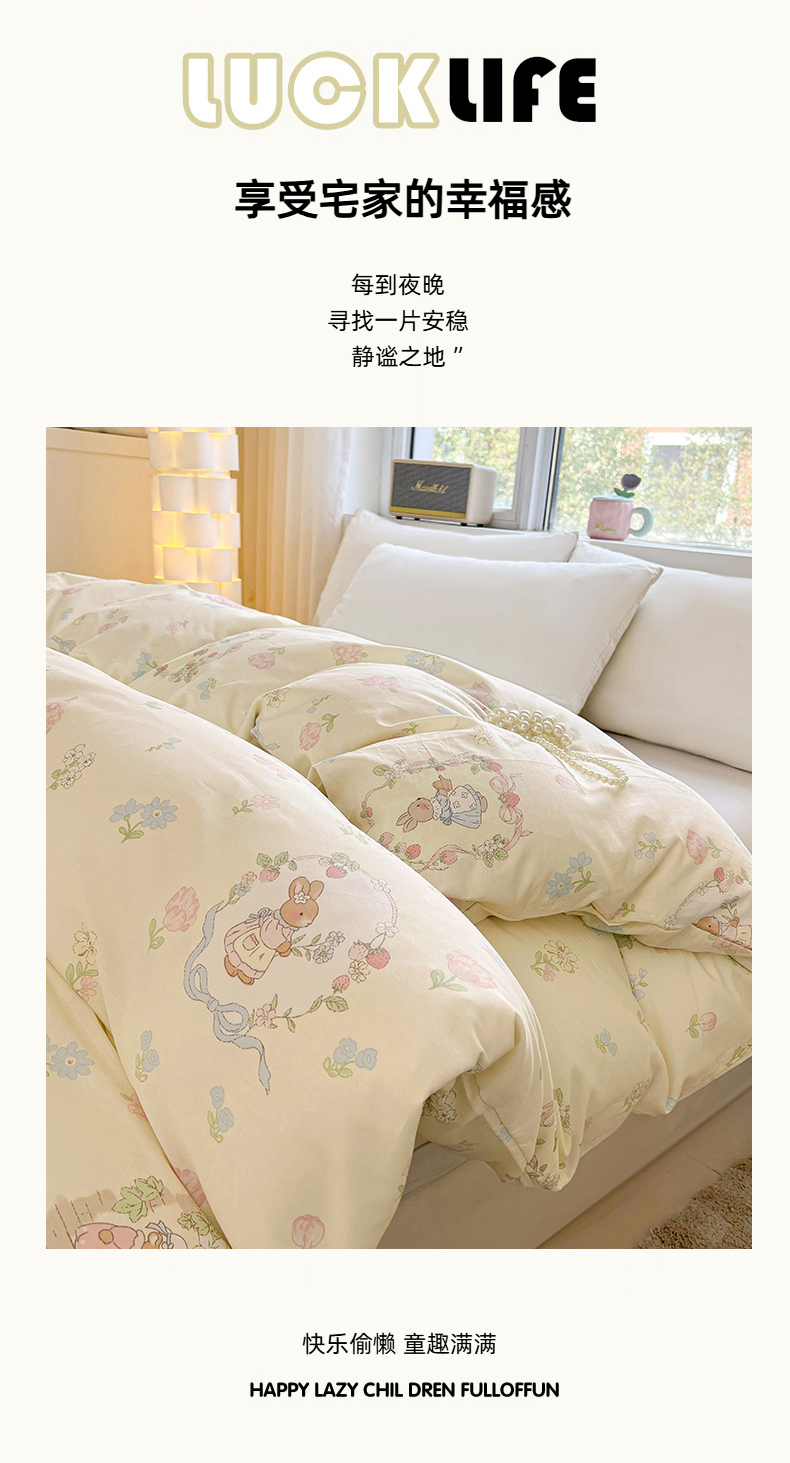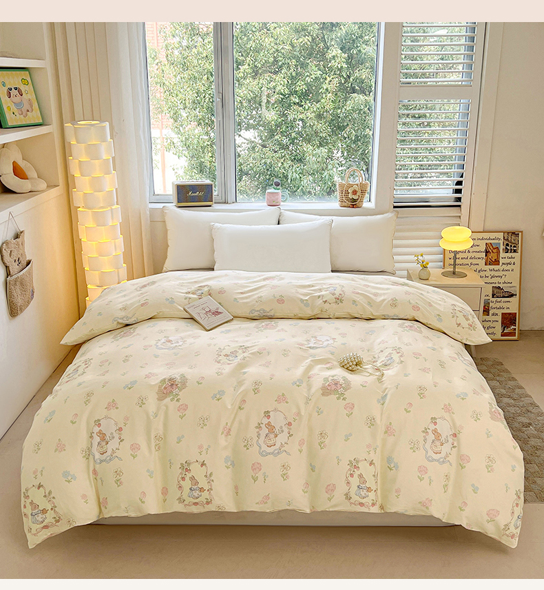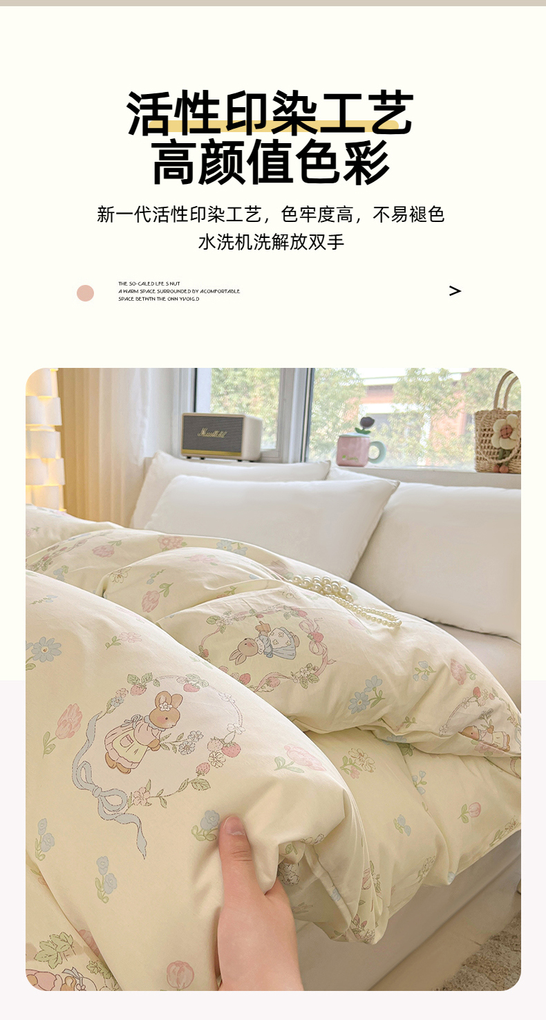 商品名称:名优家纺 2026新款13070全棉印花单被套 兔茶春序