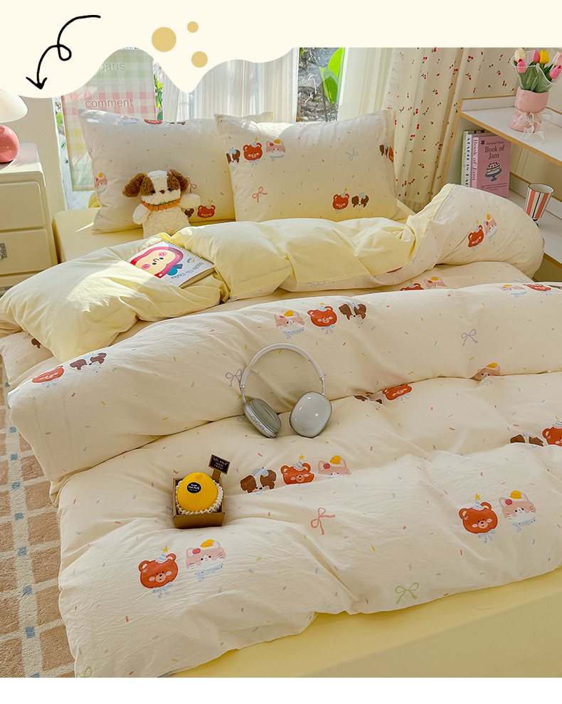 (总)颜选 2025新款绵柔水洗棉夏被四件套,贝利卡,饼干熊,波点,黑狗狗,蝴蝶结熊,花花狗,可可猫咪,铃铛狗