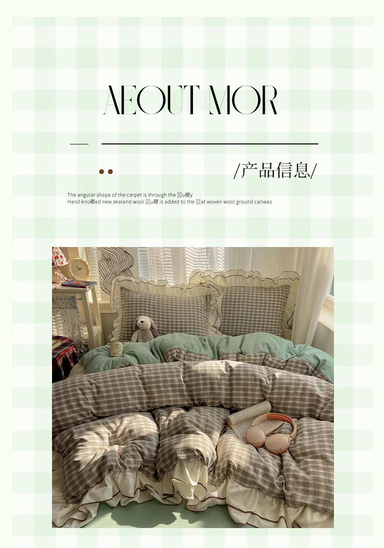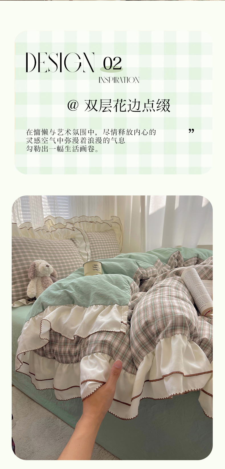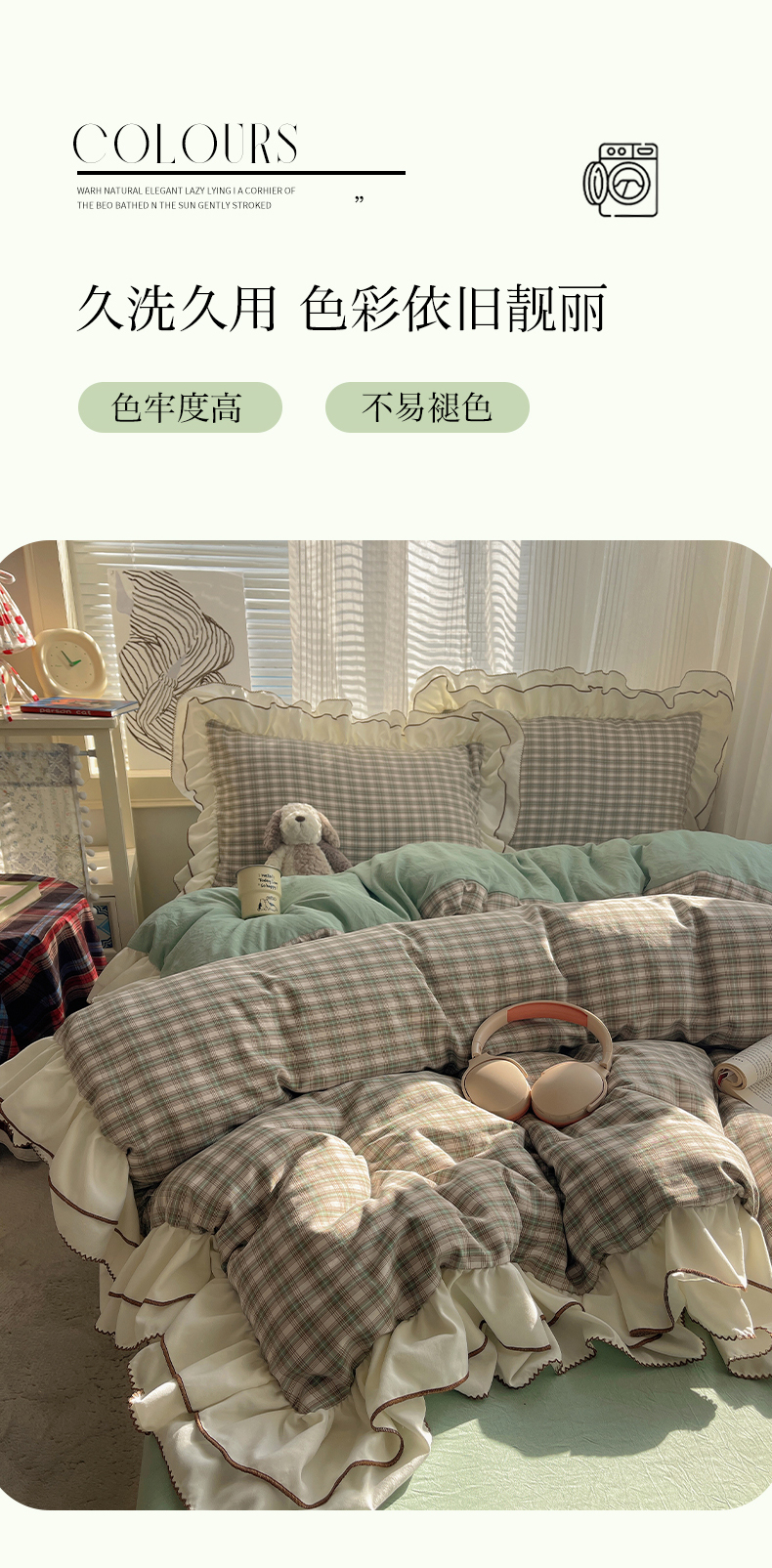 当前位置: 91家纺网 > 商品网购 > 床品套件 > 四件套 > 水洗棉四件套 > 瑞莱(持续上新) 2026新款ins风色织水洗棉双层大花边四件套 里约绿