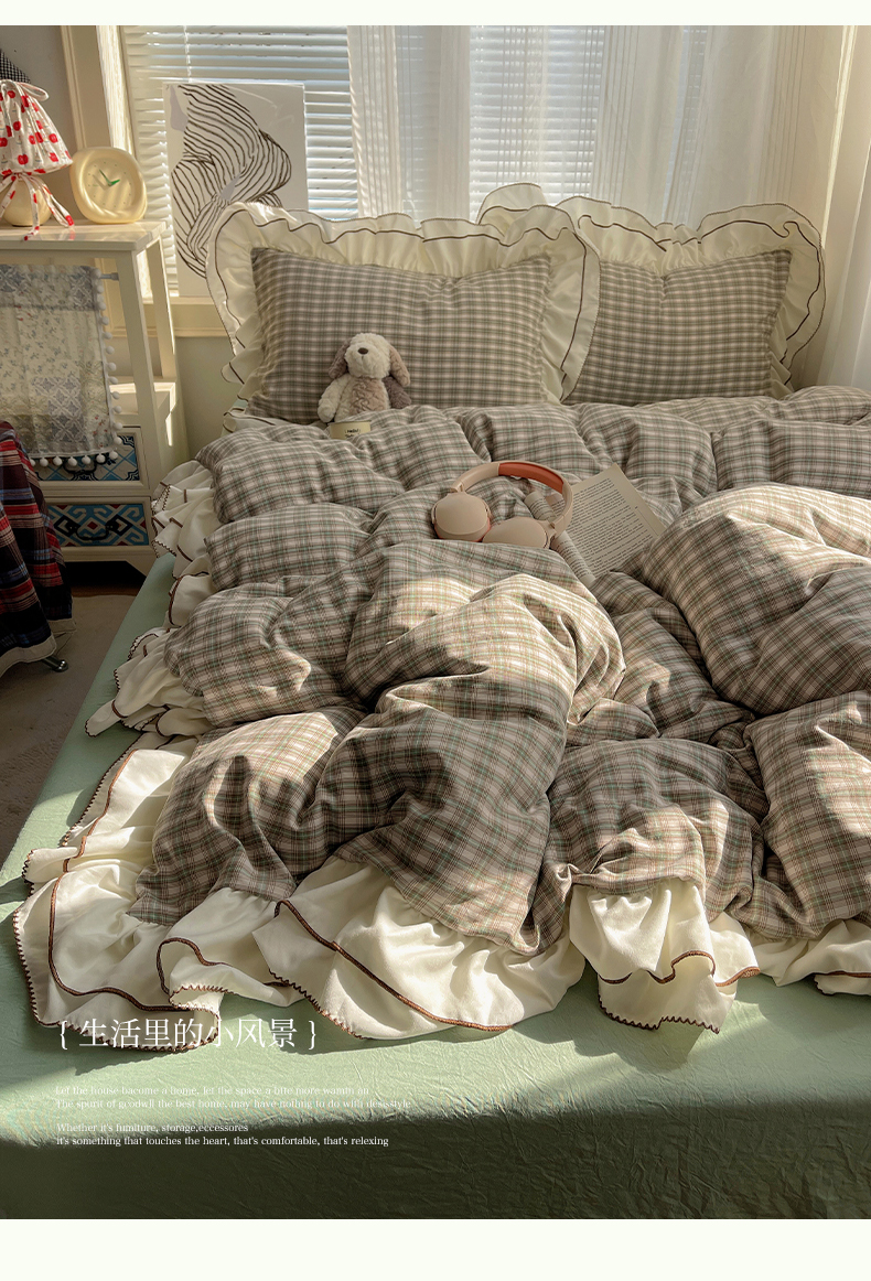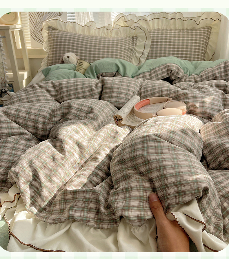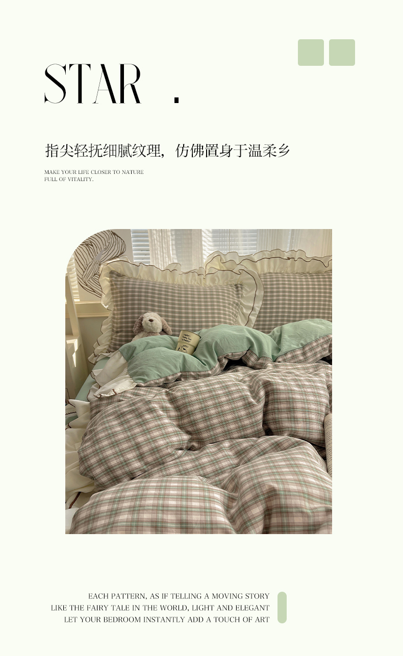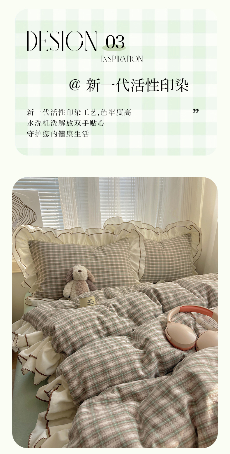 当前位置: 91家纺网 > 商品网购 > 床品套件 > 四件套 > 水洗棉四件套 > 瑞莱(持续上新) 2026新款ins风色织水洗棉双层大花边四件套 里约绿