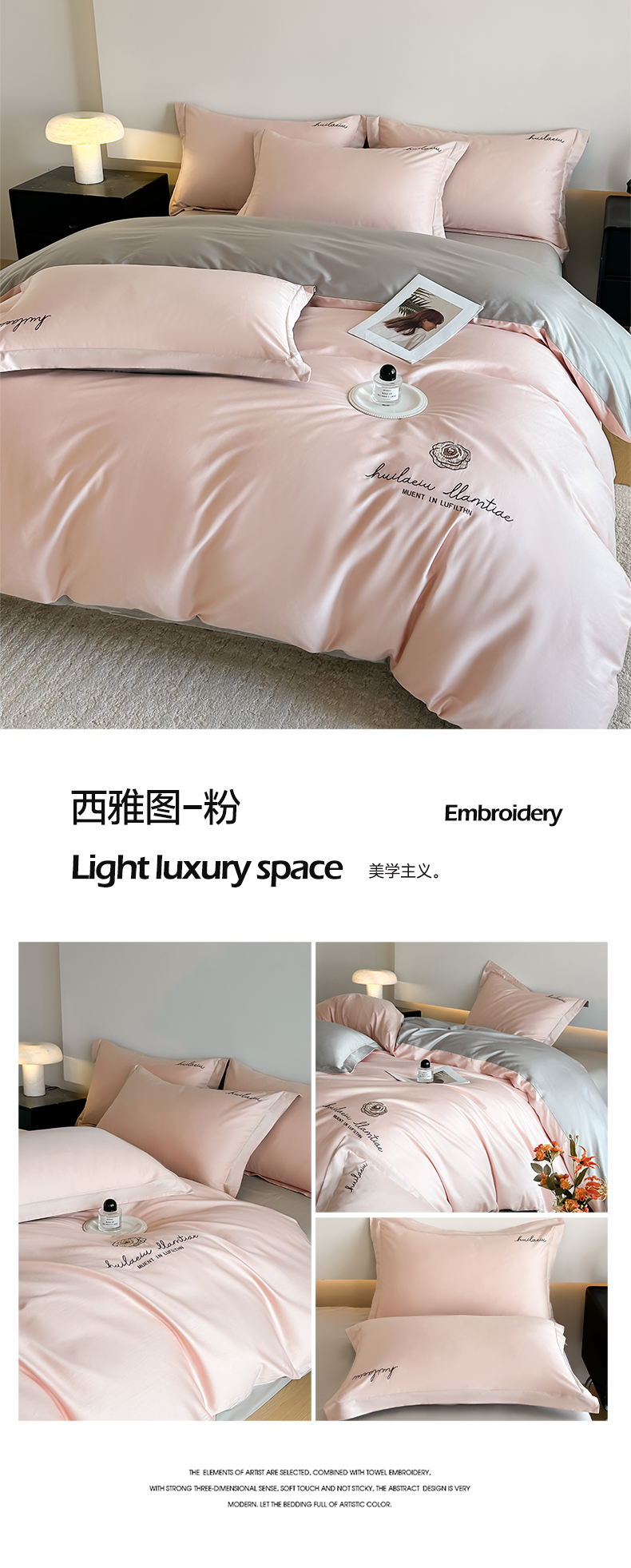 (总)涵宸家纺 2025新款全棉磨毛刺绣四件套系列-普莉,普莉-粉,普莉-绿,普莉-奶白