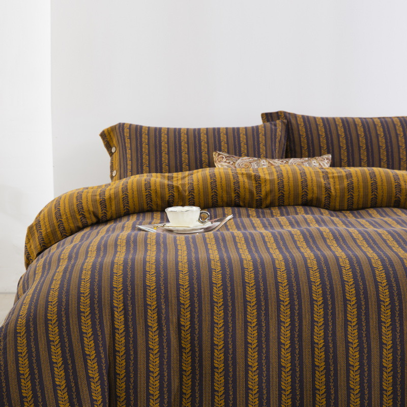 (总)双层纱家居 2026新款烟柳全棉纯棉色织提花双层纱纽扣款四件套