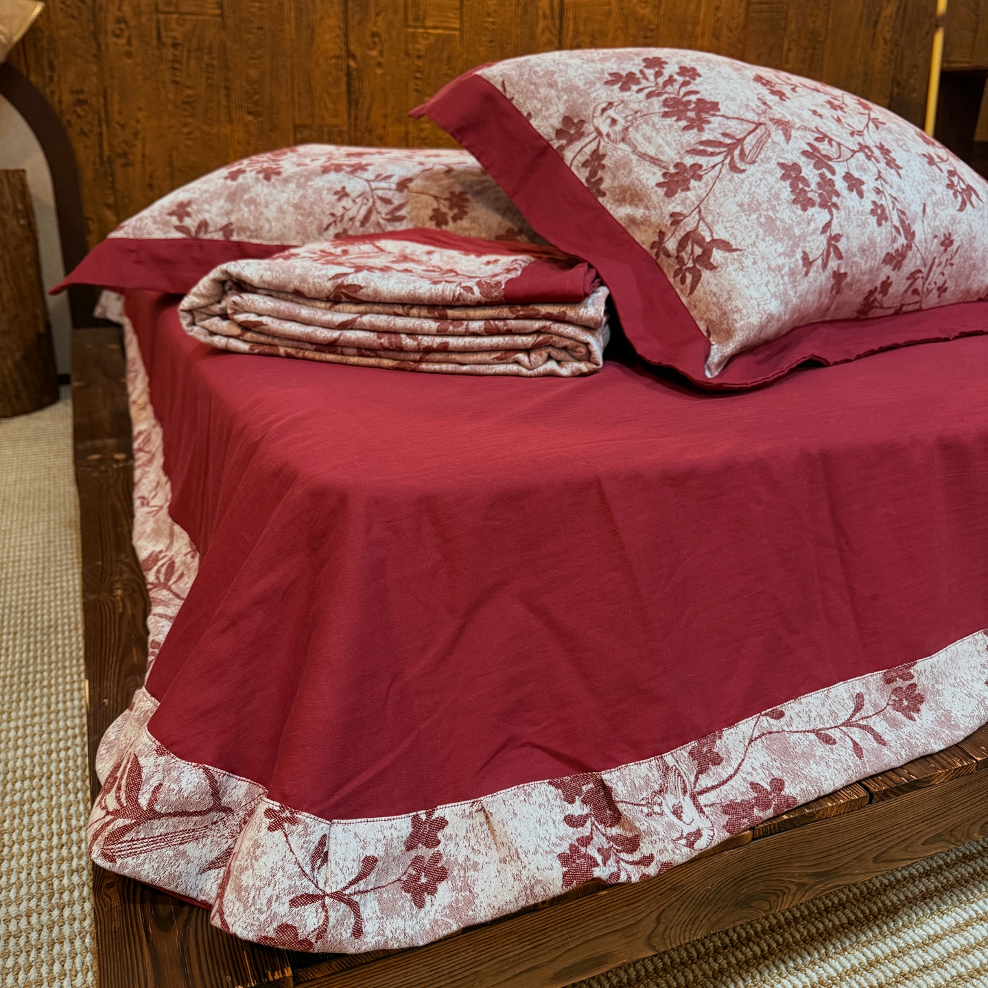 (总)双层纱家居 2026新款全棉纯棉色织提花拼角飞边款四件套-郁金花园正红,郁金花园正红