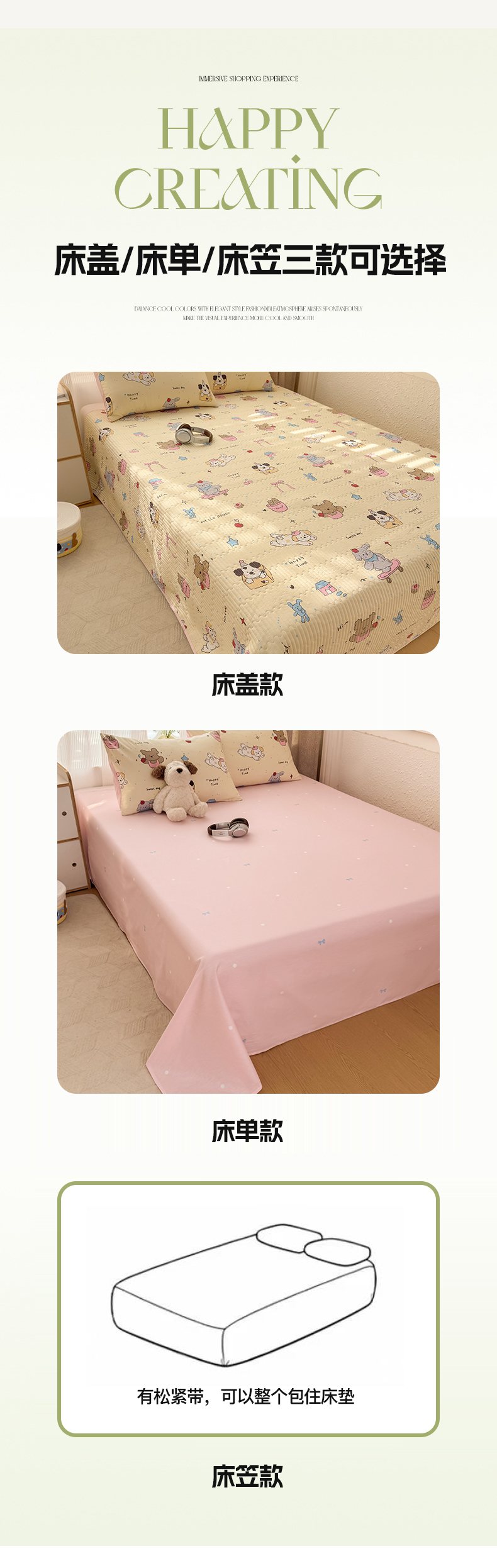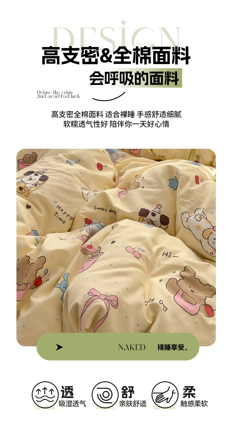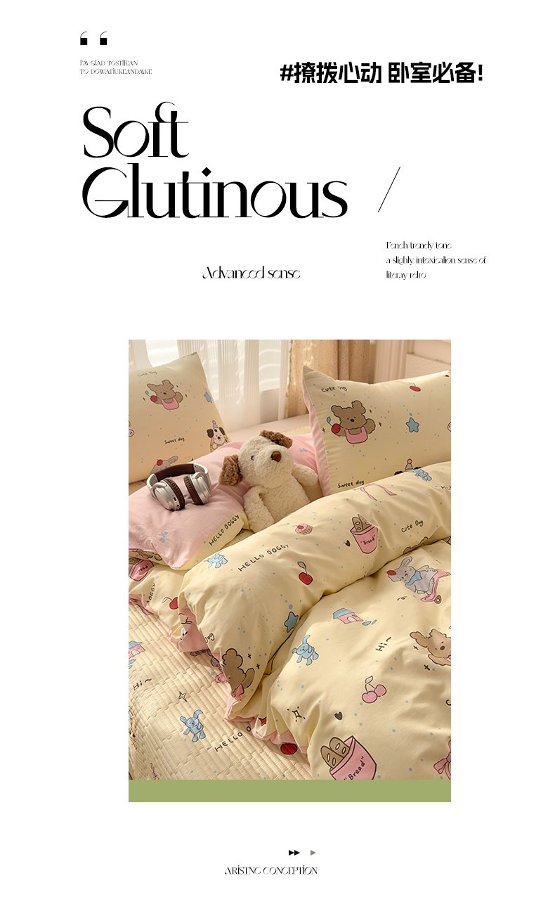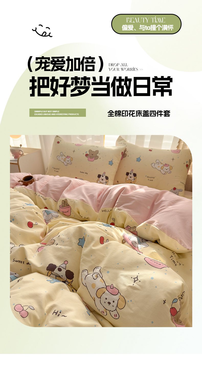 当前位置: 91家纺网 > 商品网购 > 床品套件 > 四件套 > 全棉普通四件套 > KA家纺 2026春夏新款全棉床盖款卡通印花四件套 可爱颂