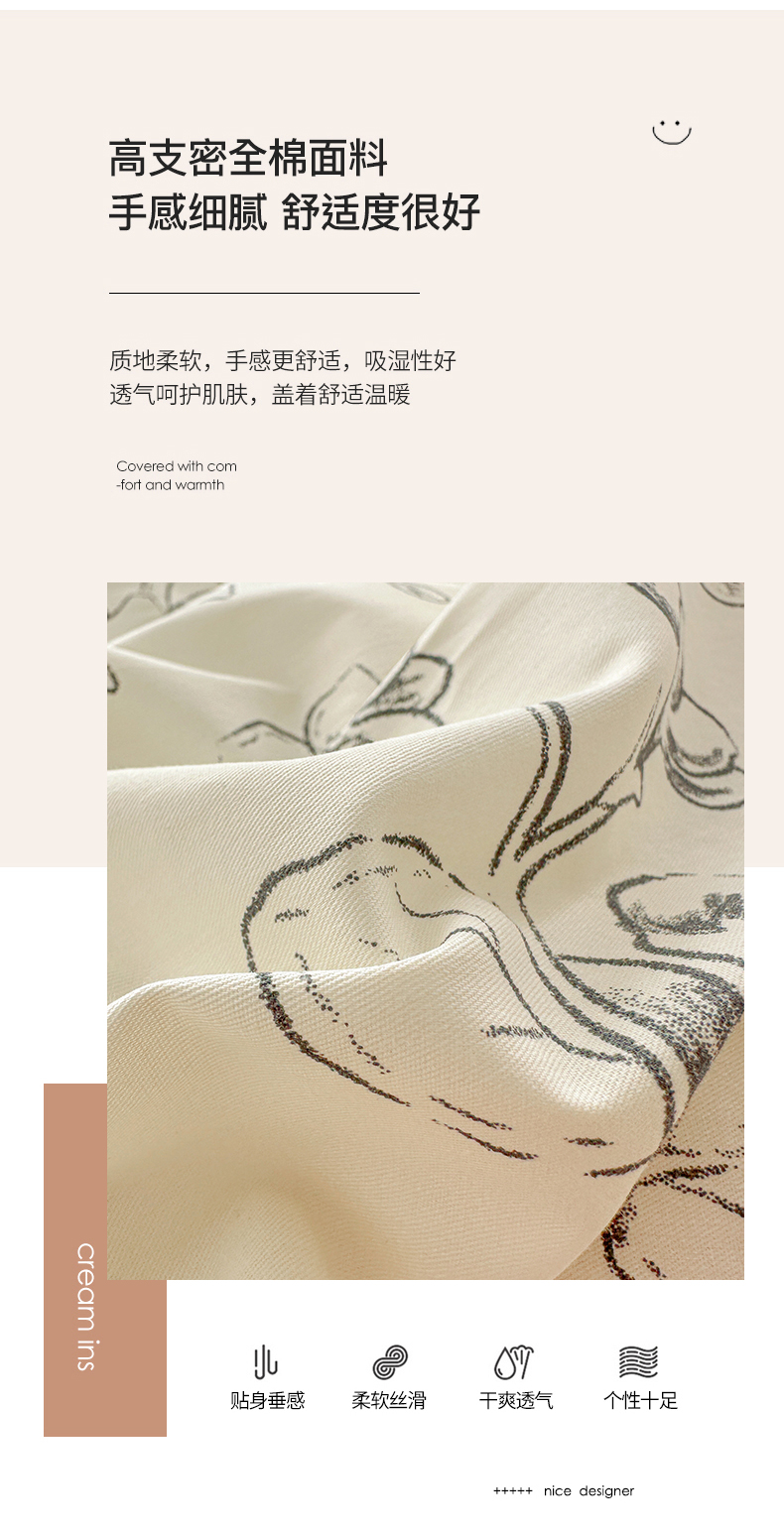 • 91家纺网 家纺一手货源 找家纺 恩泽家纺 2026新款13372ins全棉印花四件套单品系列-单被套 沫恋