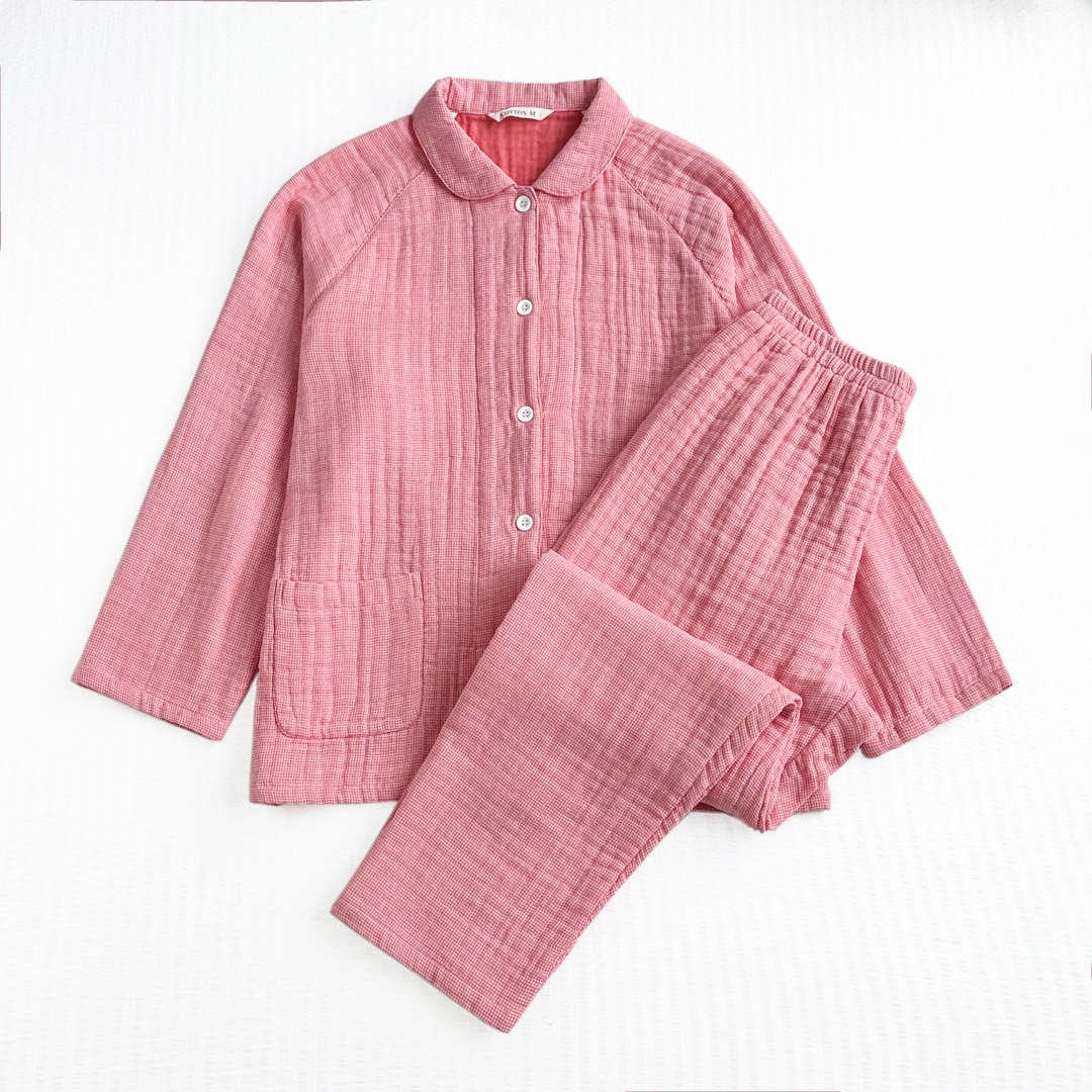 商品名称:双层纱家居 2026新款全棉色织精梳赛罗精密纺糖果四层纱睡衣 女款-西瓜红