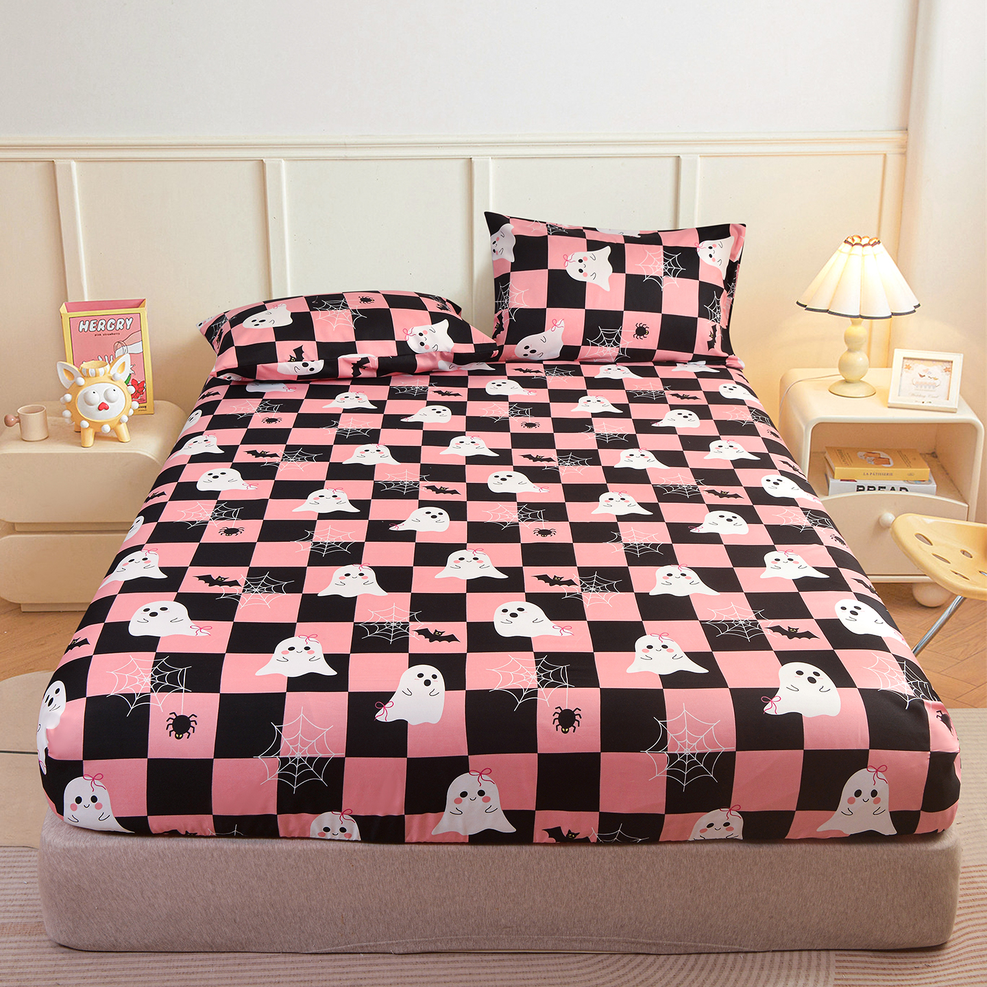 柏钧家纺 2026新款万圣节元素85g芦荟棉外贸尺寸可定制单品床笠跨境直播床笠三件套 万圣节幽灵