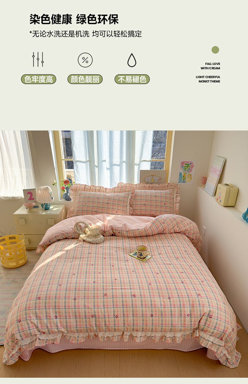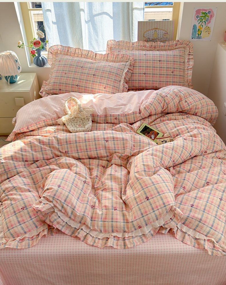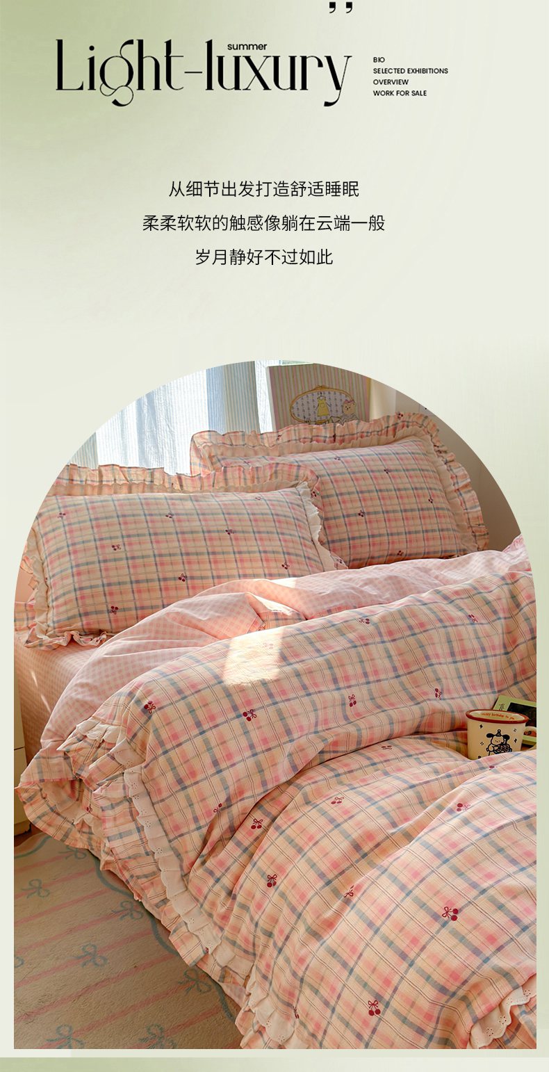 商品名称:乐童家纺 2026新款纯棉双层花边小清新系列四件套 岚花绪