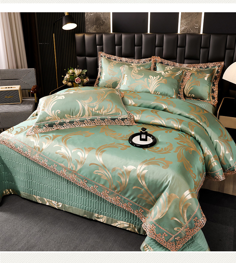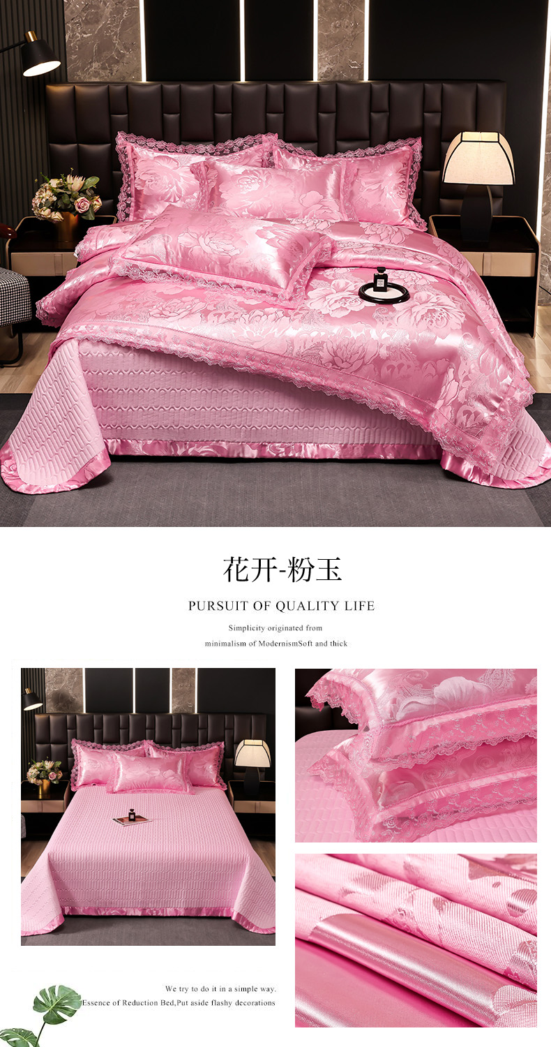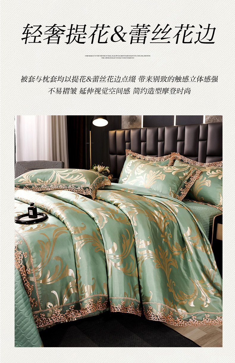 (总)提花大世界 2026新款直播爆款水洗真丝天丝贡缎提花夹棉床盖花边四件套,波西花园-浅豆沙,花间-金驼,花开-粉玉,墨韵-金属灰,奈欧莎-深豆沙,雅布洛-祖母绿,英伦时尚-绿