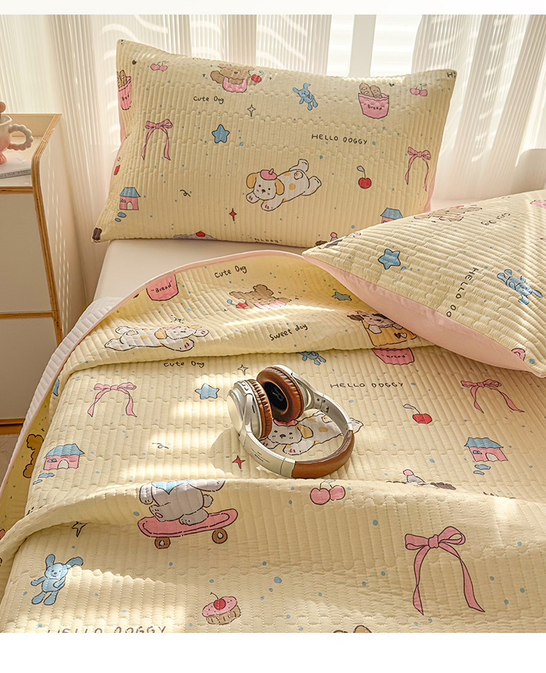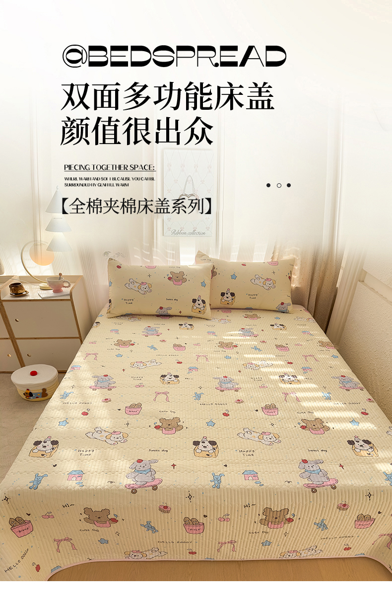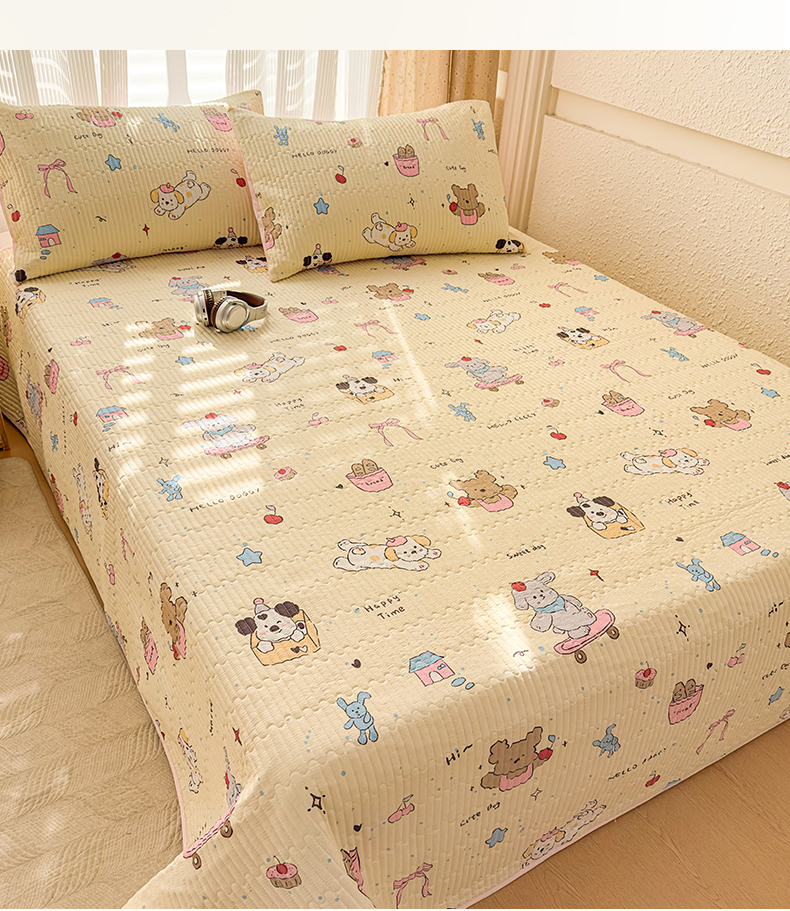 • 91家纺网 家纺一手货源 找家纺 KA家纺 2026春夏新款小清新全棉纯棉印花床盖三件套-第一波 可爱颂