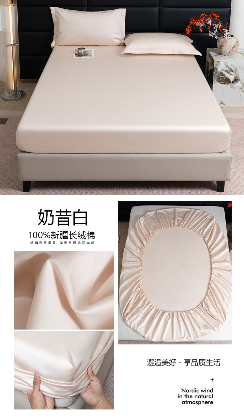 凌云家纺 2026春夏新款A类100支长绒棉纯棉单床笠 床笠单件-提供买家秀 联系客服 奶昔白