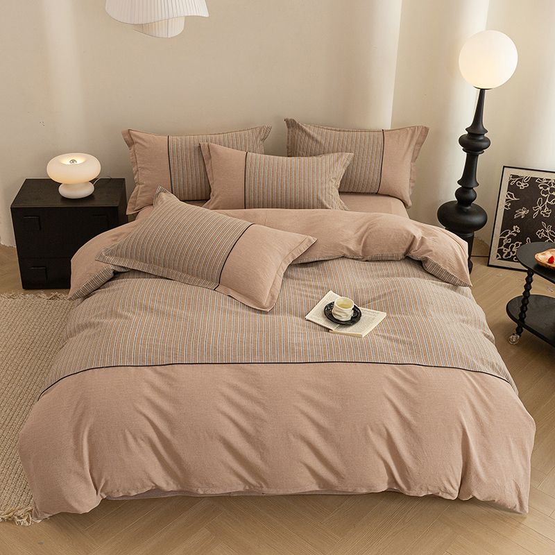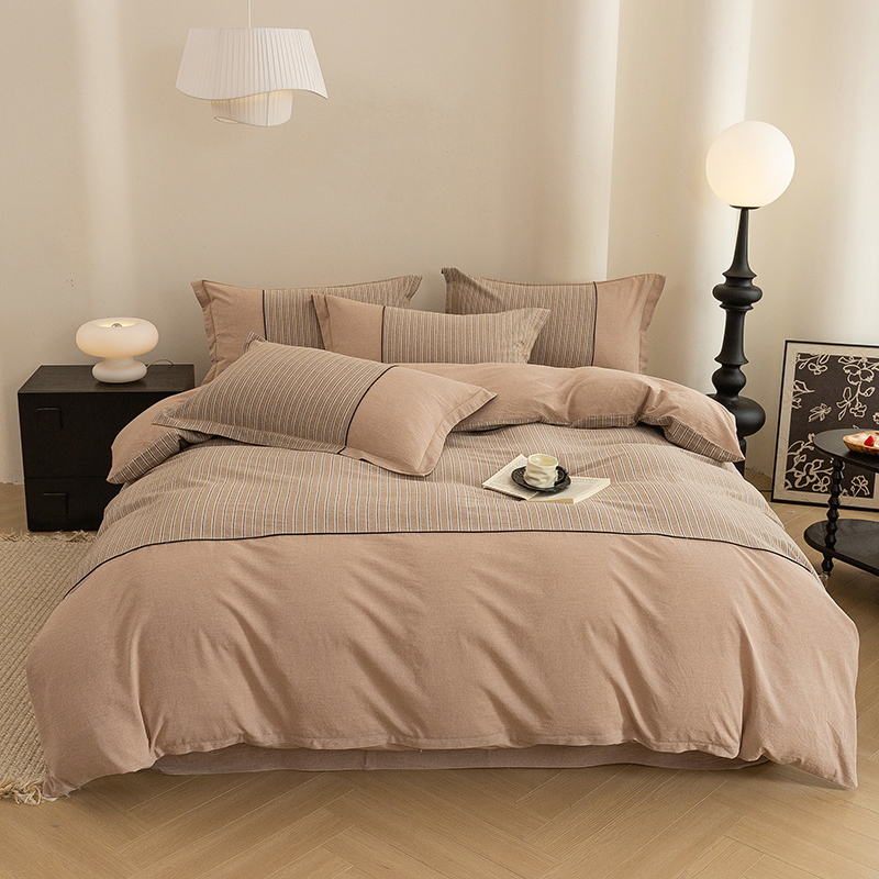 喜四方 2026新款100%全棉纯棉色织水洗棉花边工艺款四件套-系列二 暮川(咖)