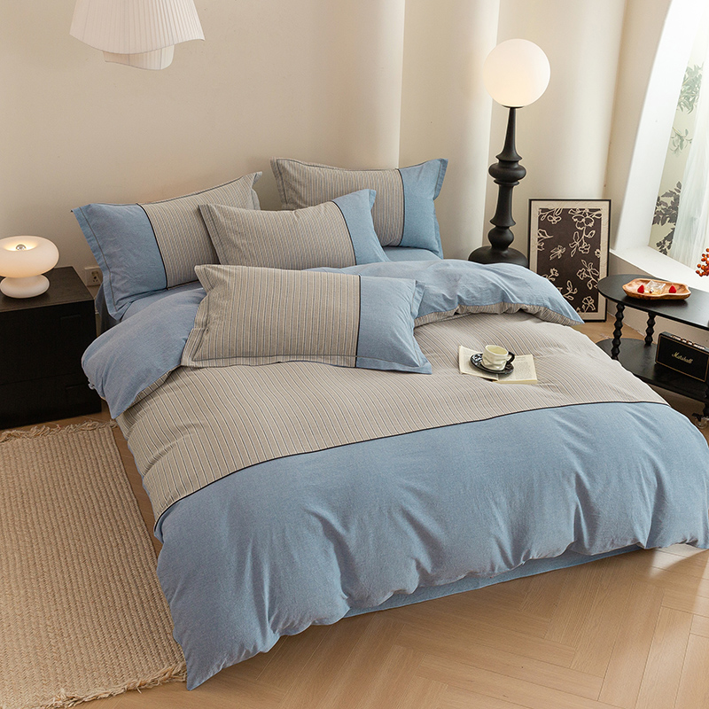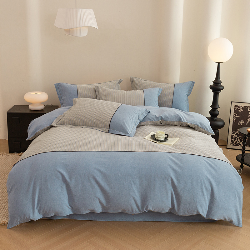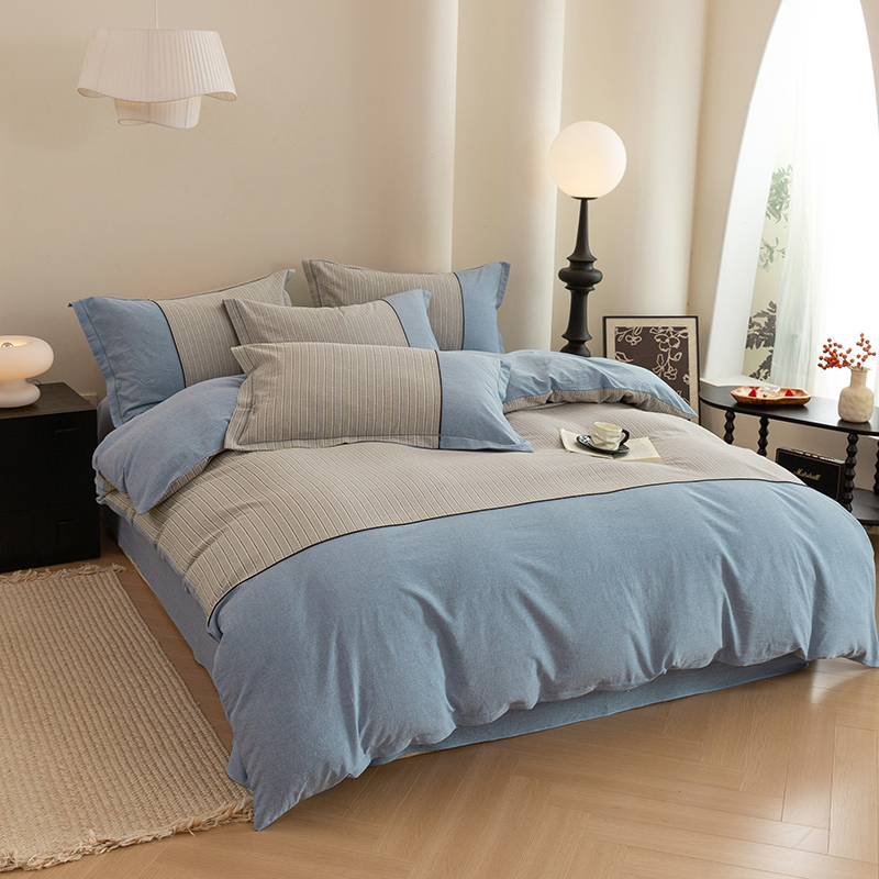 (总)喜四方 2026新款100%全棉纯棉色织水洗棉花边工艺款四件套-系列二,马克-兰,暮川(咖),暮川(兰)