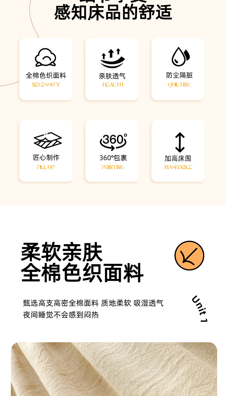 (总)尊康家纺(原磊科) 2026新款全棉水洗棉色织大豆棉床笠-心语系列,心语-珍珠白,心语-绅士灰,心语-天空蓝,心语-香槟,心语-薄荷绿,心语-粉玉