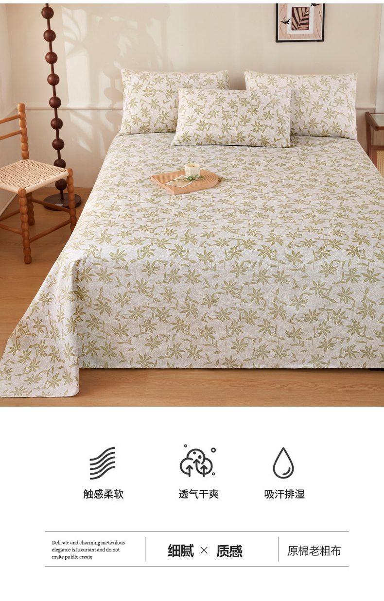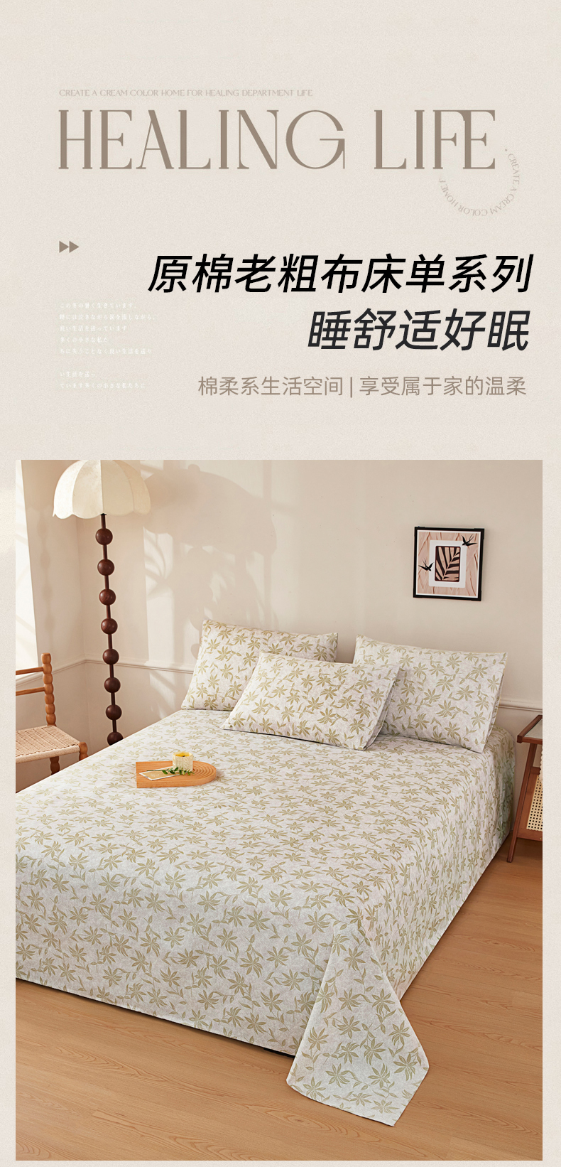 当前位置: 91家纺网 > 商品网购 > 床品套件 > 三件套 > 美丽折家纺 2026春夏新款原棉老粗布单床单床单单件床单三件套 绿影