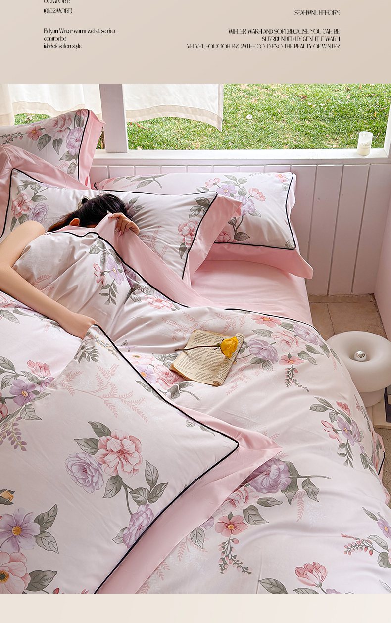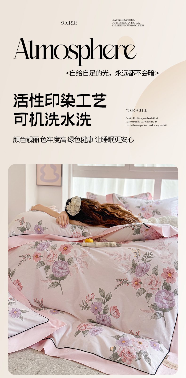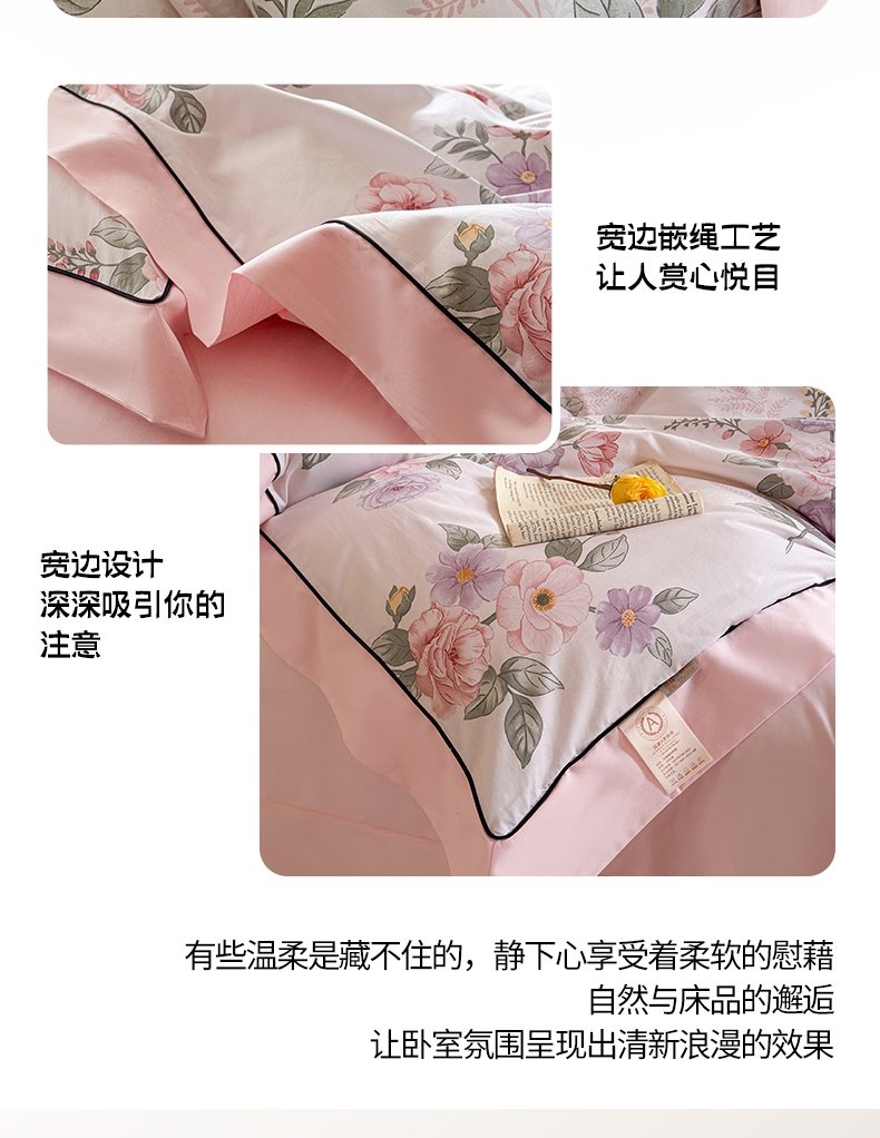 当前位置: 91家纺网 > 商品网购 > 床品套件 > 四件套 > 全棉普通四件套 > 7V 2026新款嵌绳宽边纯棉四件套13376全棉小清新喷气宽幅长绒棉被套床单床笠套件 落花