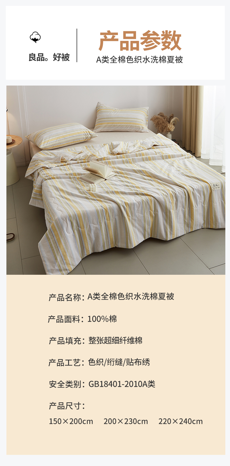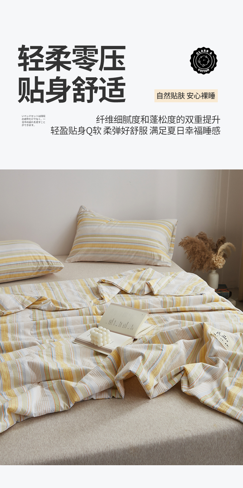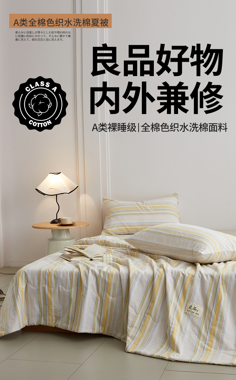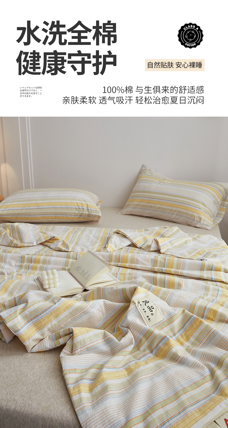 尊妙被业 2026新款全棉色织水洗棉春秋被夏被-叠拍 沐妍-黄