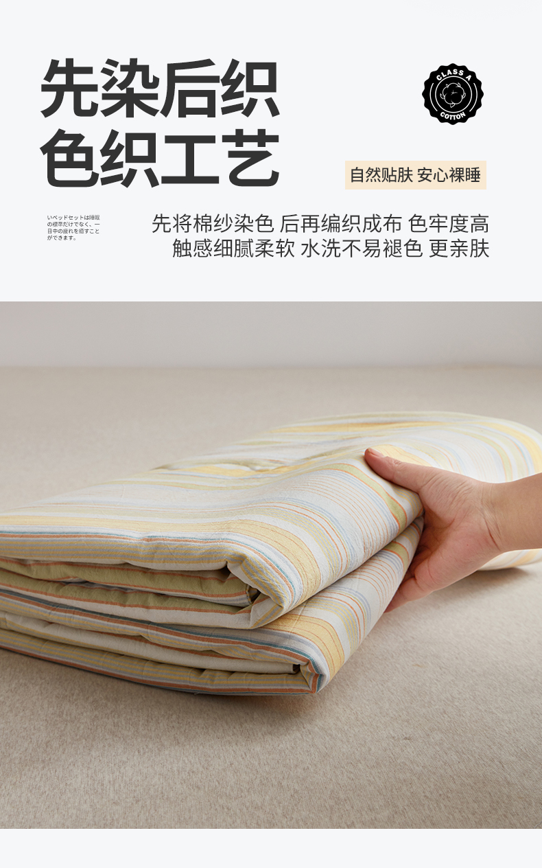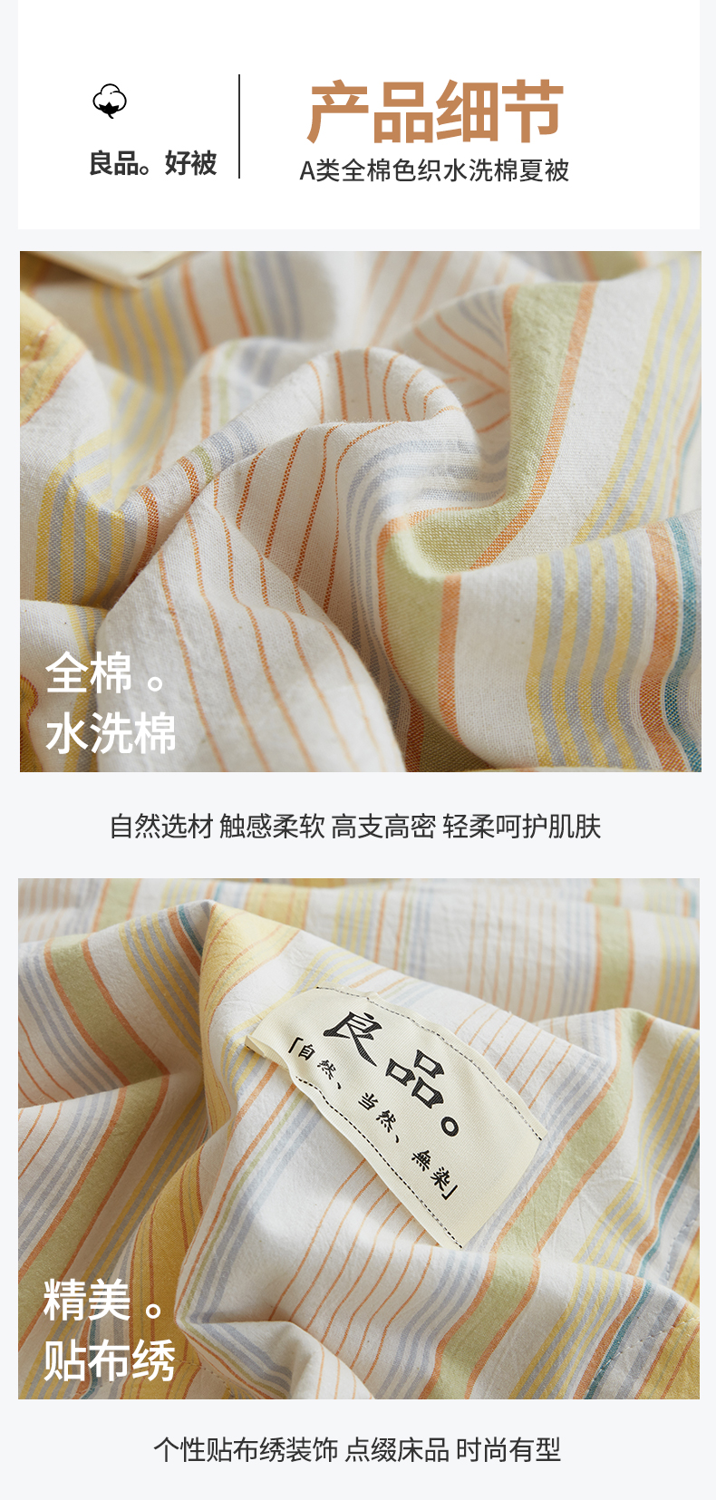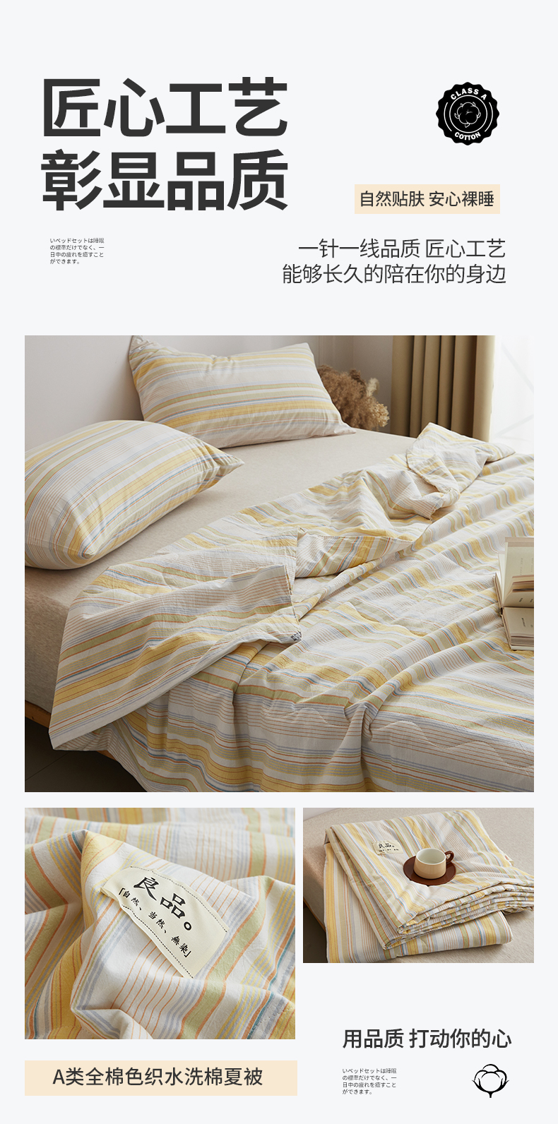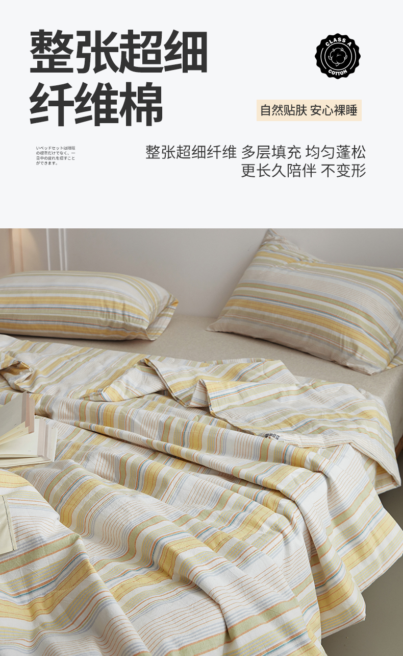 尊妙被业 2026新款全棉色织水洗棉春秋被夏被-叠拍 沐妍-黄