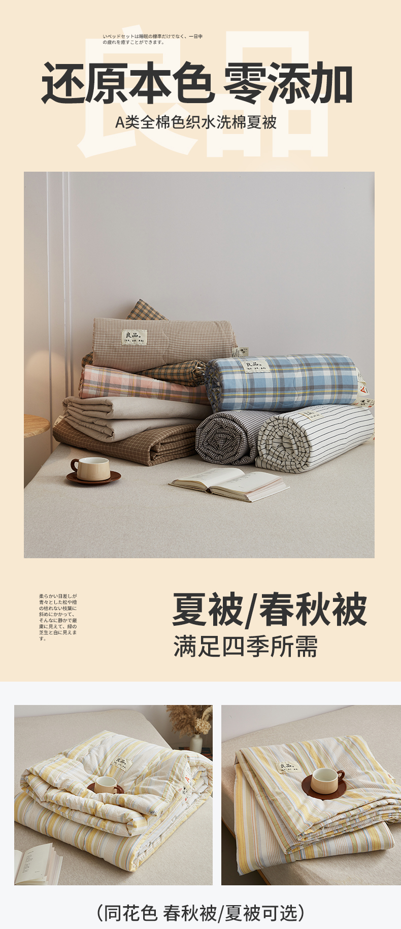 (总)尊妙被业 2026新款全棉色织水洗棉春秋被夏被-叠拍,春野-咖,灰细条,乐事-兰,乐事-绿,蜜格-灰,蜜格-米,莫妮-兰,莫妮-玉,沐妍-黄,千鸟格-灰,千鸟格-驼,童话-粉,晚晴-红,晚晴-咖
