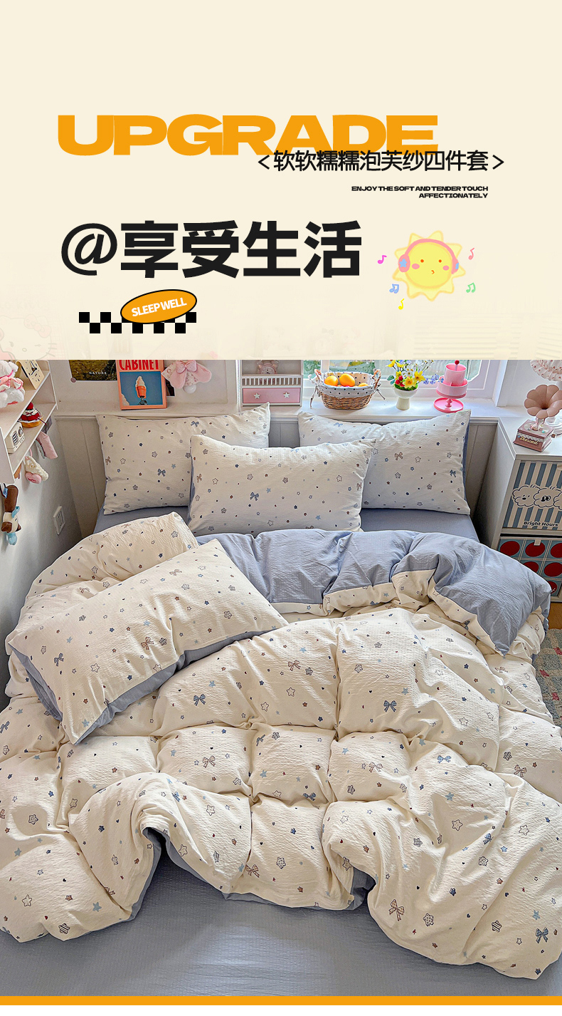 (总)N先生+V 13814689556 发大图/买家秀 2026春夏新款泡芙云感双层纱四件套