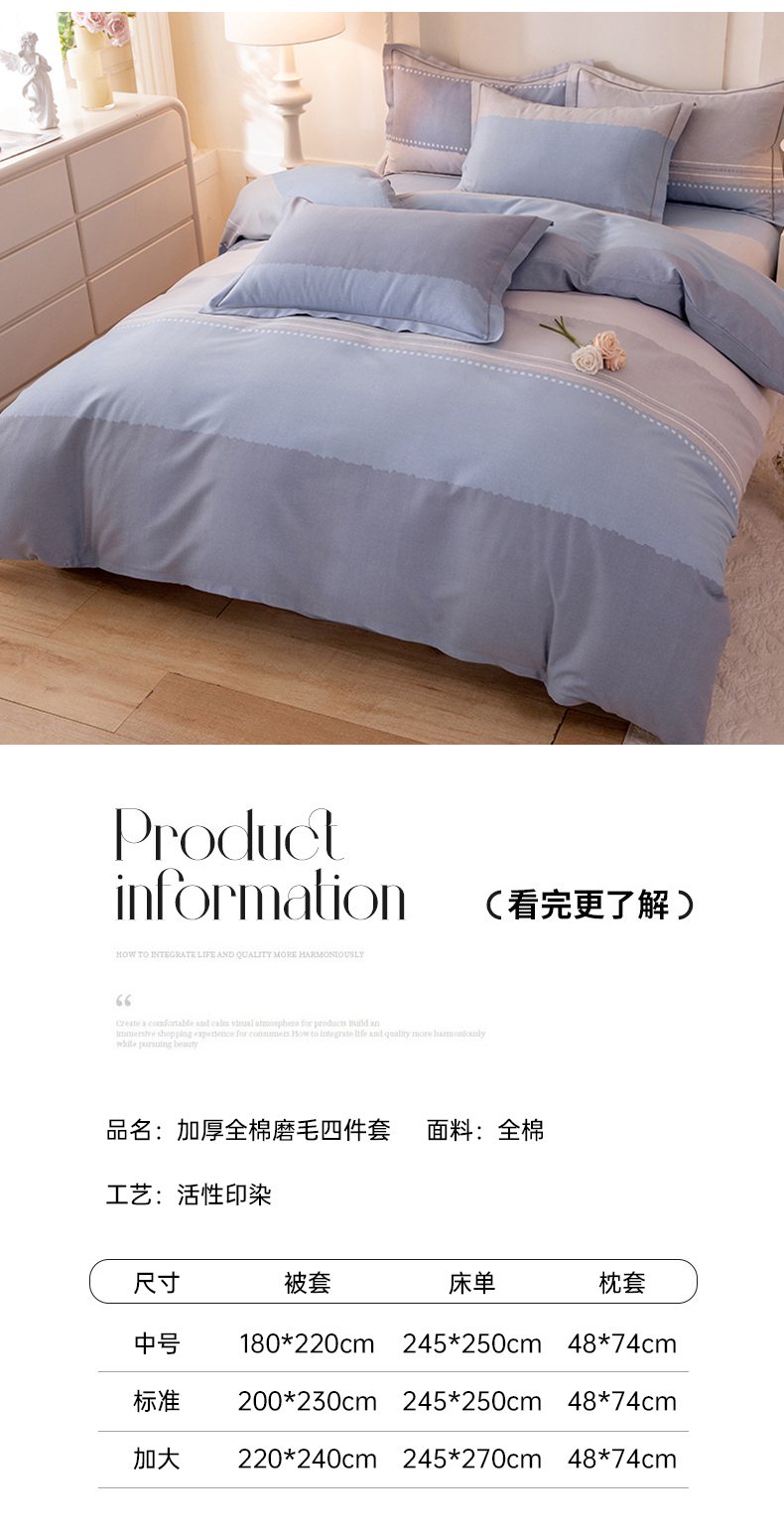 (总)磨毛世家家纺 2025新款全棉四件套纯棉加厚生态磨毛套件,北美风情-灰,布列塔-粉红,布列塔-幻影灰,布列塔-浅咖,布列塔-浅紫,布列塔-天空蓝,春和景明-粉,春和景明-蓝,粉色,花之盛宴,花枝漫漫-灰,灰色,拉布布-米,洛丽塔-绿,玫瑰物语-灰,梦初雨-蓝,南瓜甜心-灰,苹果绿,浅咖色,浅笑嫣然-灰,浅紫,天空蓝,向云端-粉,小乔人家-黄,亚马逊-灰,瑶花知-蓝,叶韵-蓝,银杏叶-绿,云雨轩-粉,珍妮花园-蓝,北海道-咖,北海道-蓝,丰收季节,飘摇-蓝,时尚都市-蓝