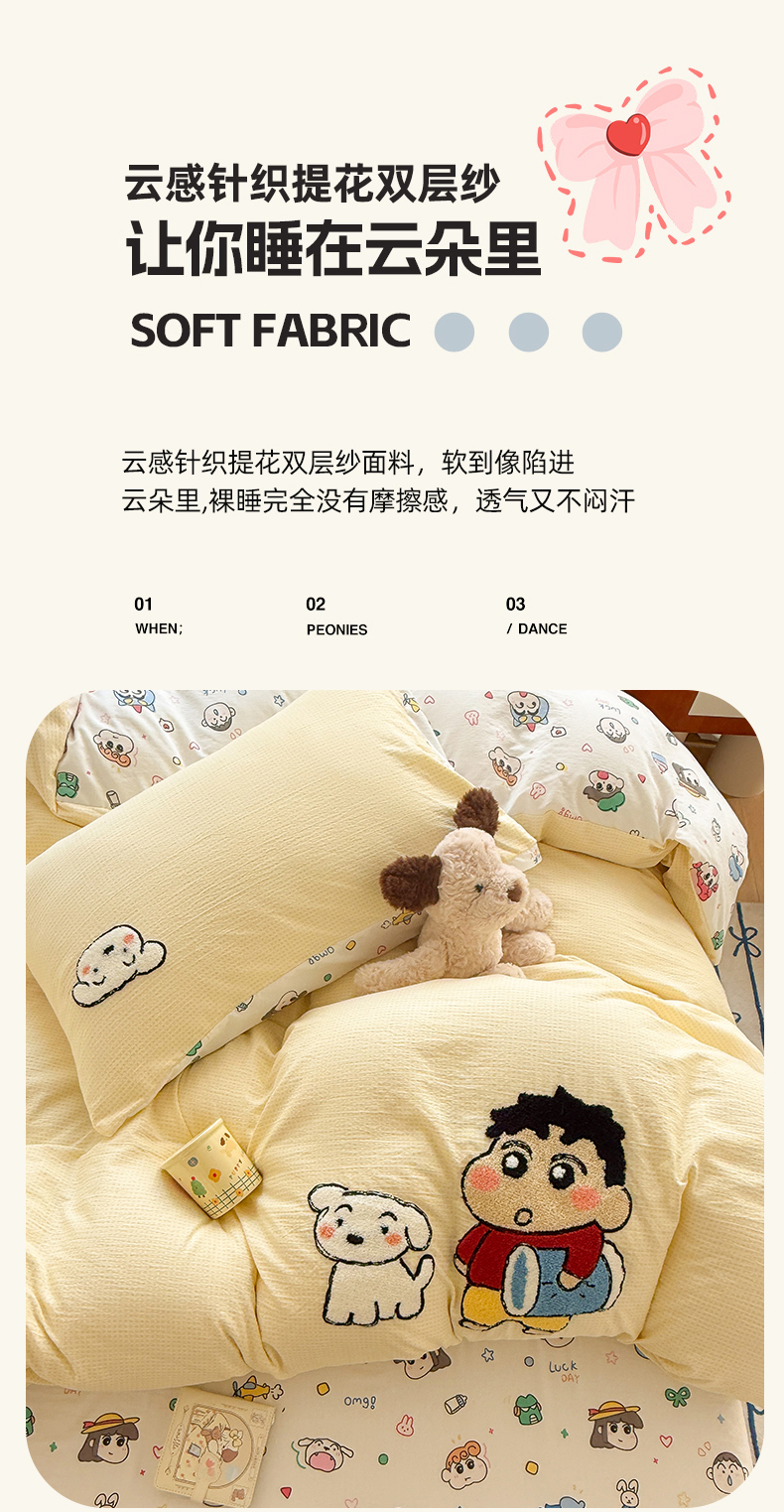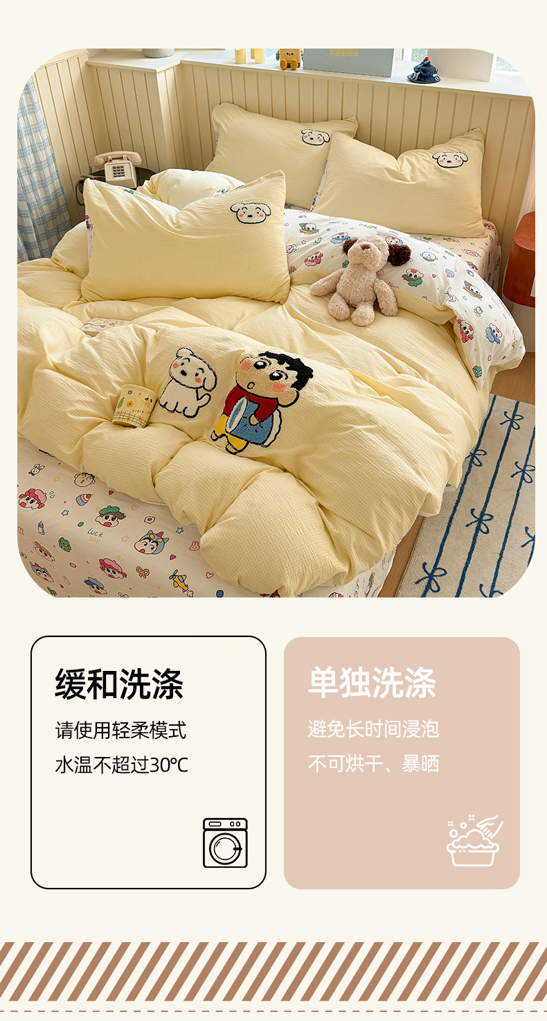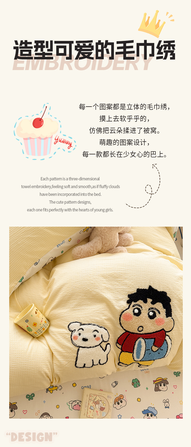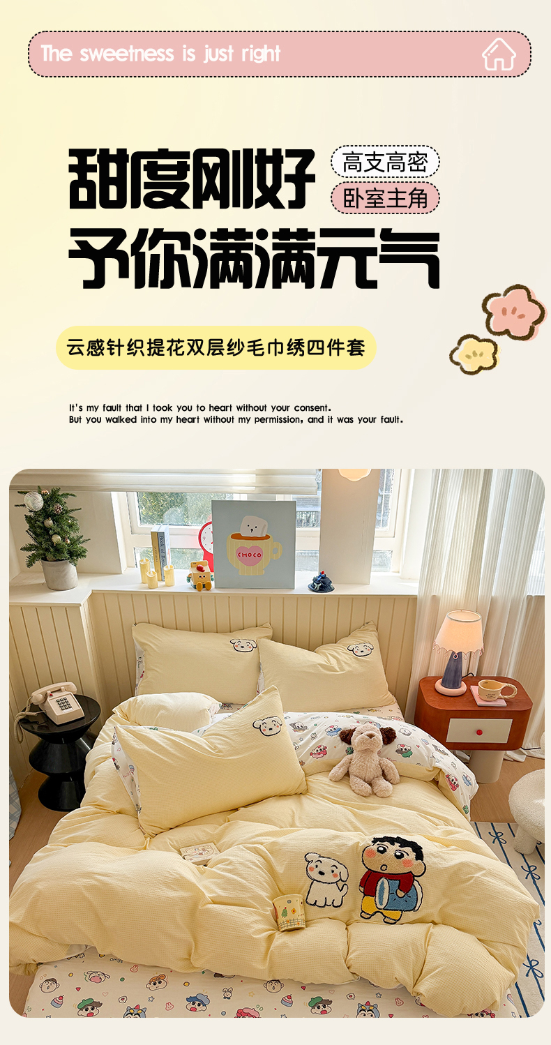 当前位置: 91家纺网 > 商品网购 > 床品套件 > 四件套 > 针织棉四件套 > 艾特你 2026新款针织提花双层纱可爱毛巾绣四件套 欢乐伙伴-黄