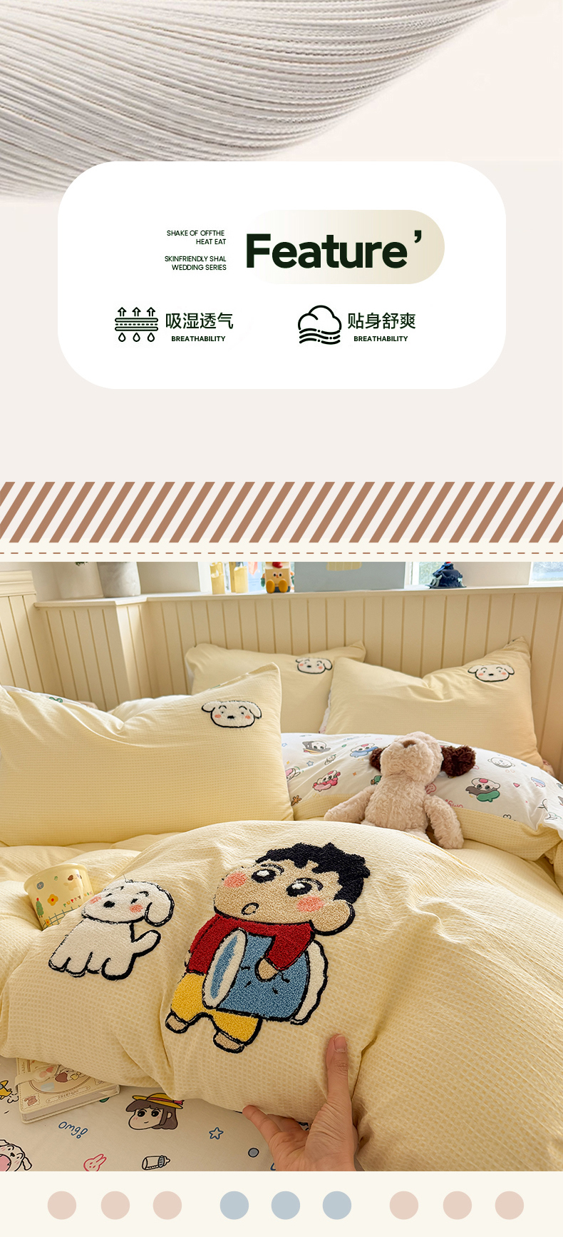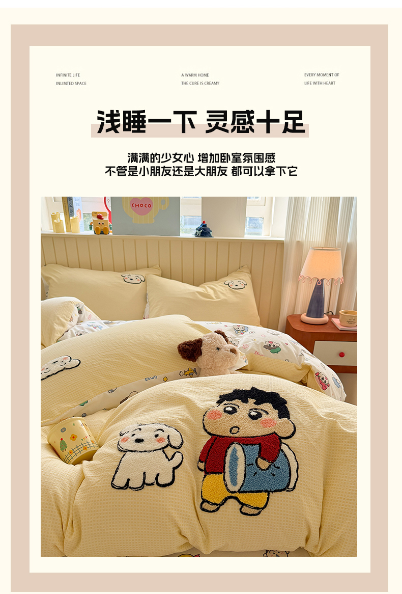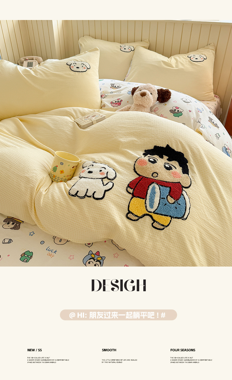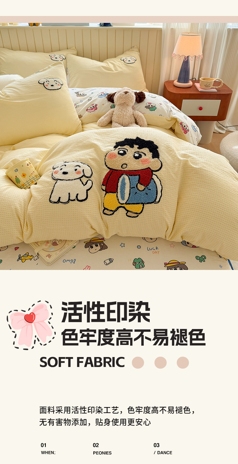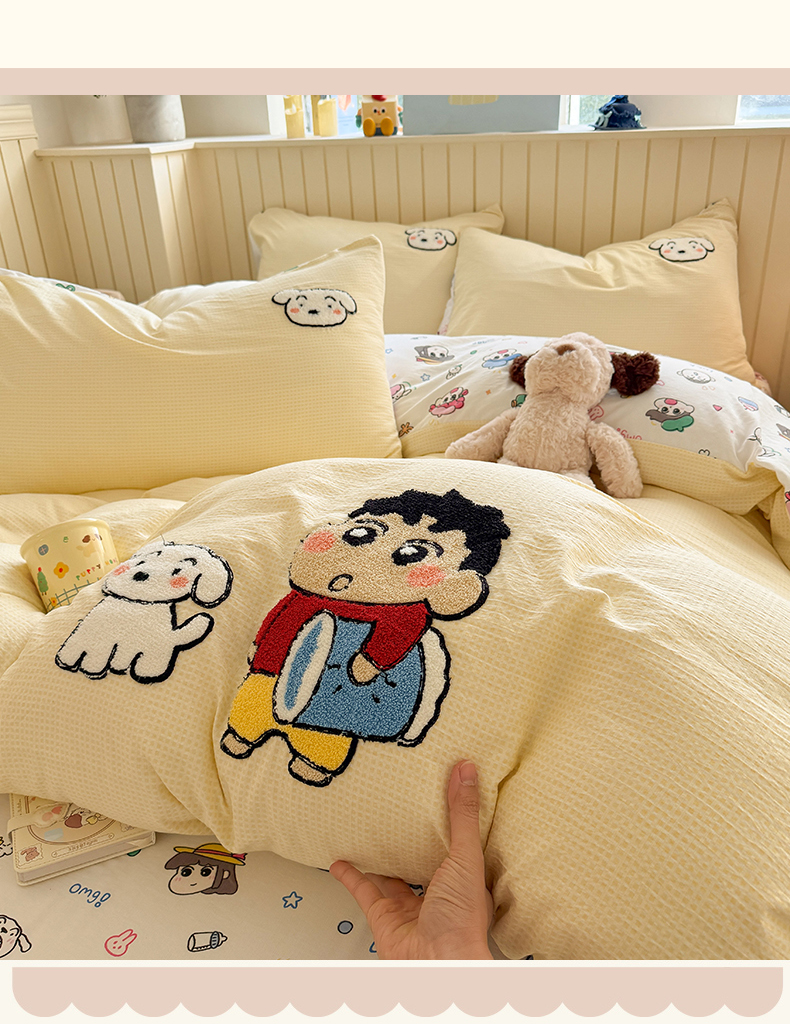 当前位置: 91家纺网 > 商品网购 > 床品套件 > 四件套 > 针织棉四件套 > 艾特你 2026新款针织提花双层纱可爱毛巾绣四件套 欢乐伙伴-黄