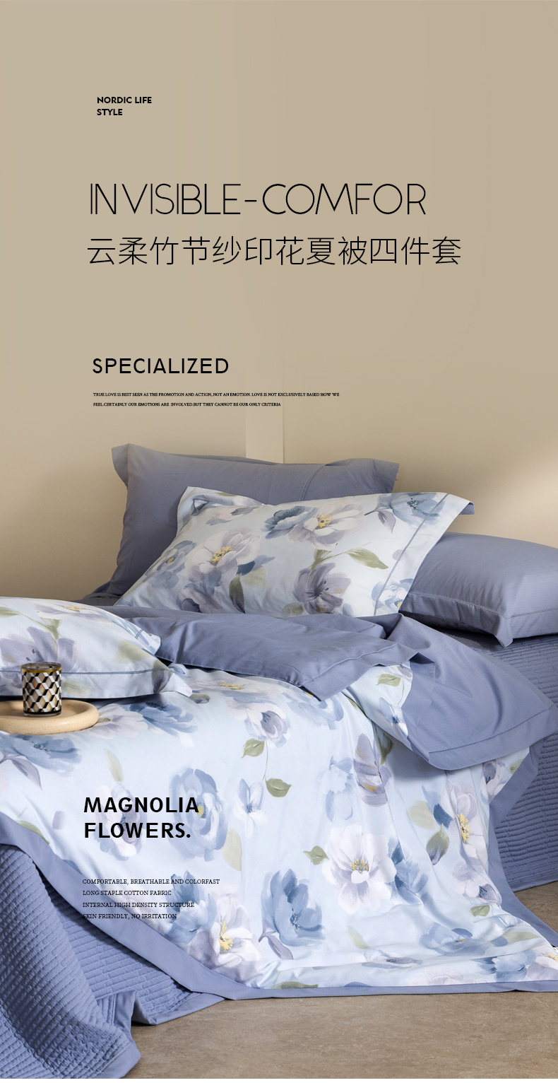 当前位置: 91家纺网 > 商品网购 > 被子 > 夏被 > 立奥被业 2026新品冰丝棉夏被四件套竹节纱夏被四件套 静谧花园-蓝