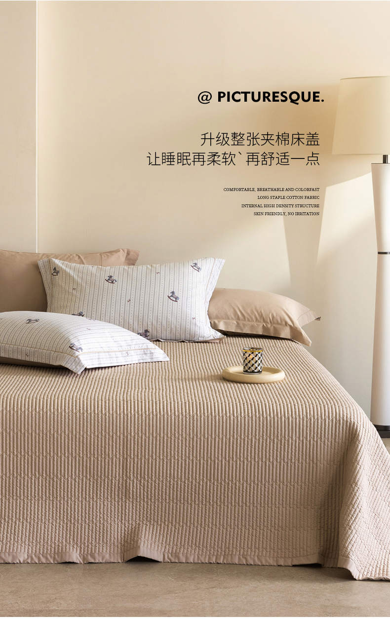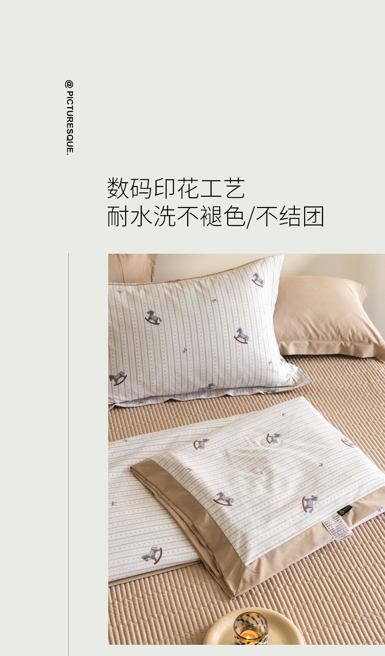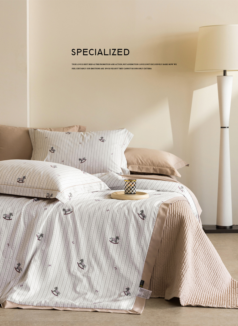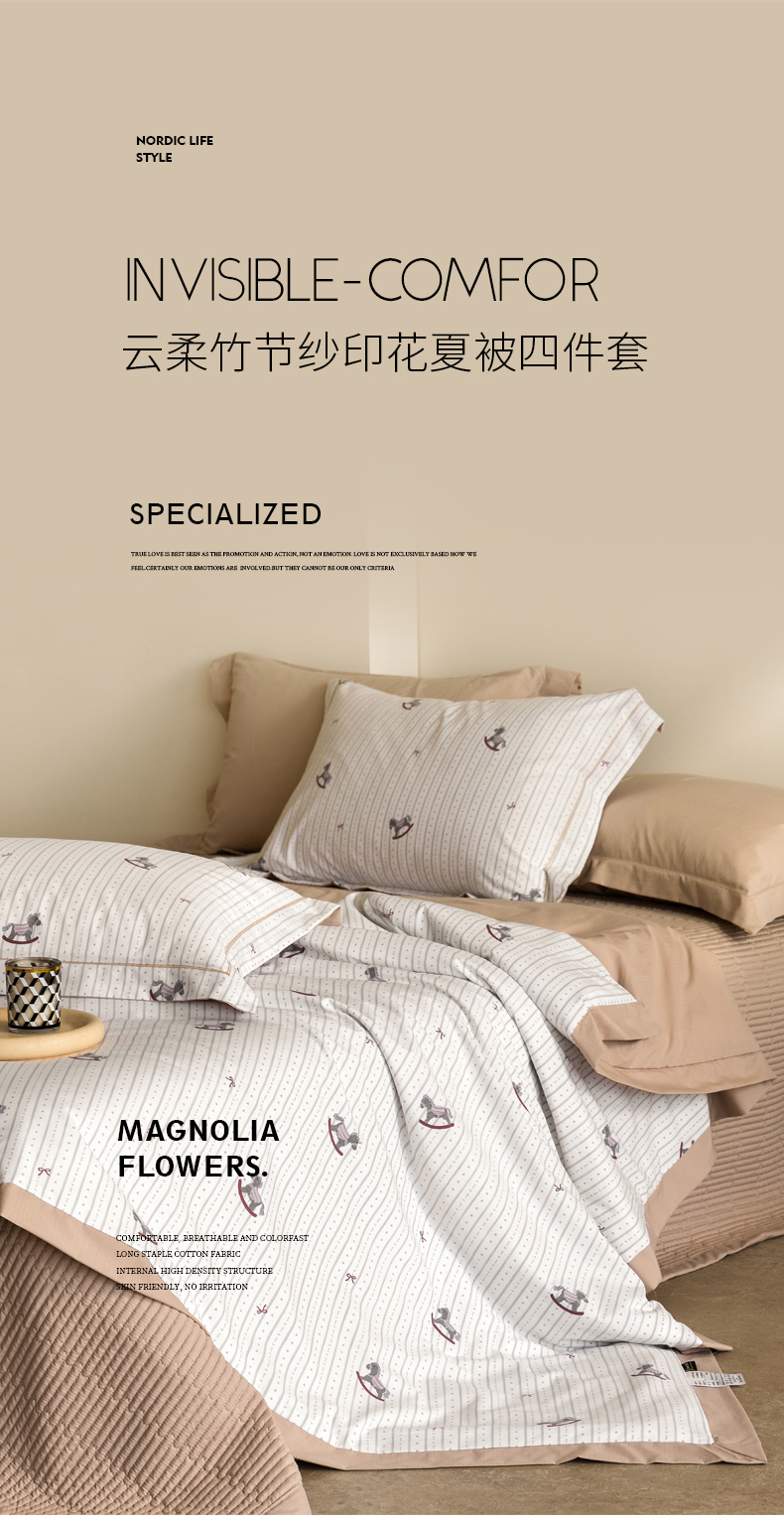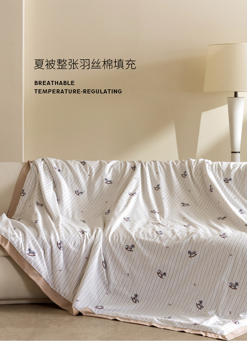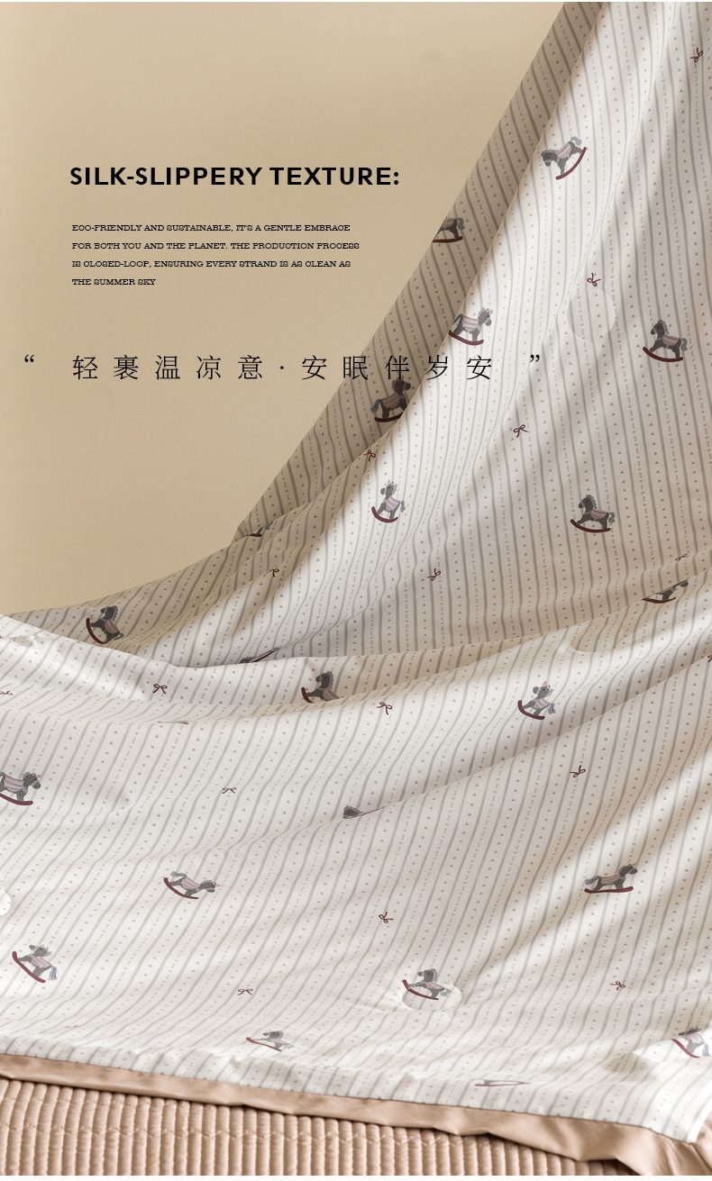 • 91家纺网 家纺一手货源 找家纺 立奥被业 2026新品冰丝棉夏被四件套竹节纱夏被四件套 童摇木马-咖