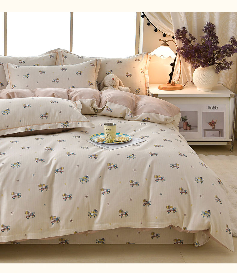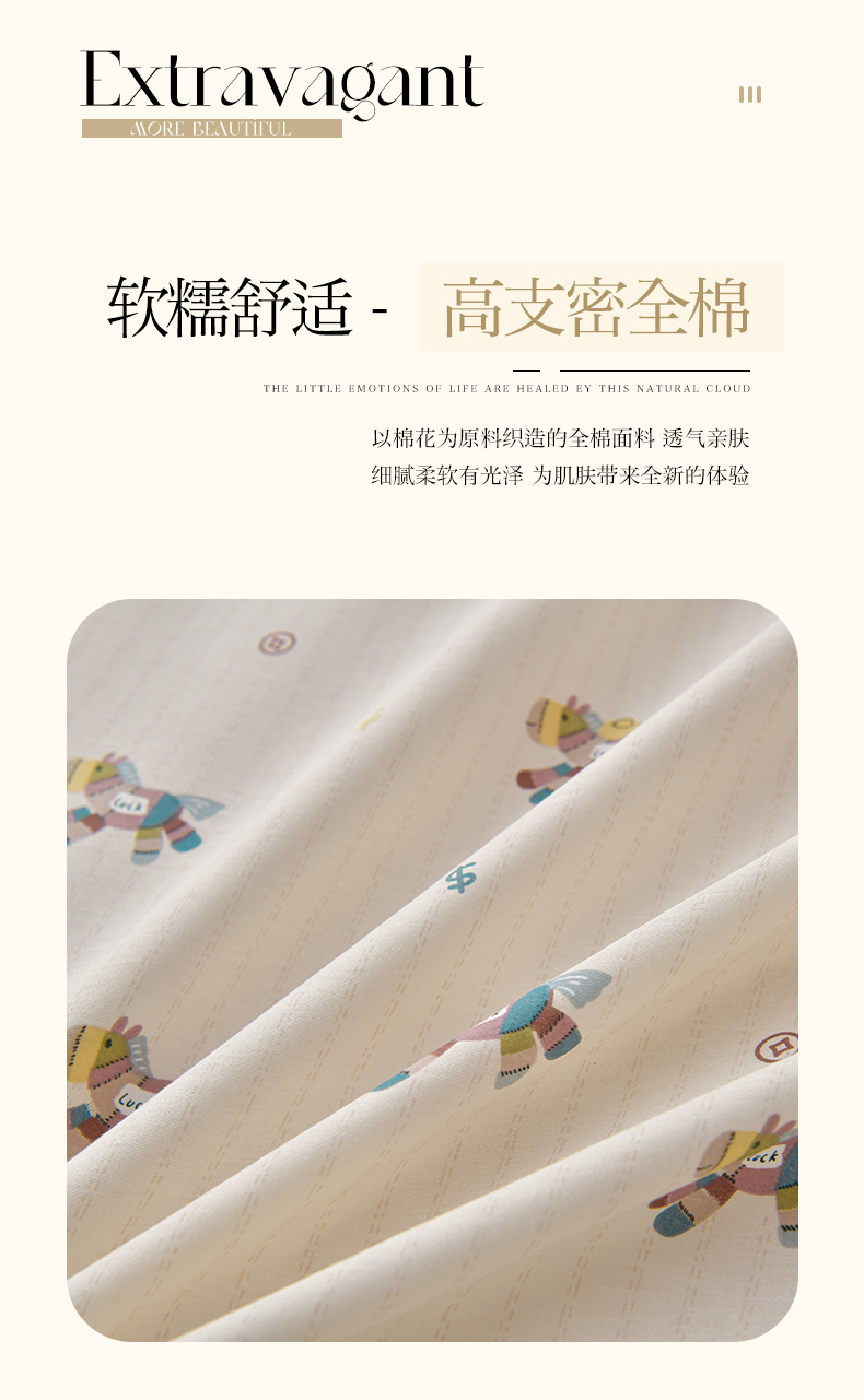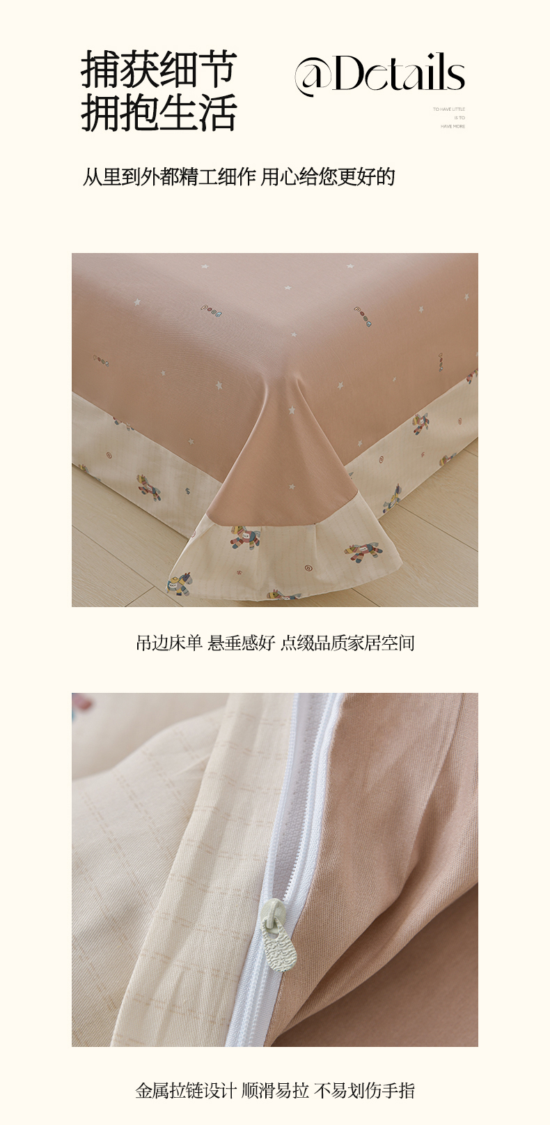 商品名称:绘萱家居 2026直播爆款一字绣吊边款纯棉100%全棉四件套印花百分百(喷气高品质) 小马浅浅