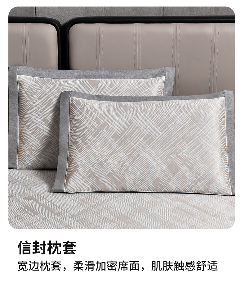 (总)小牛席业 2026新款半定位大提花凉感冰丝席(床笠款)凉席竹席藤席冰藤席乳胶席豆豆席,灰色,粉色,蓝色,香槟