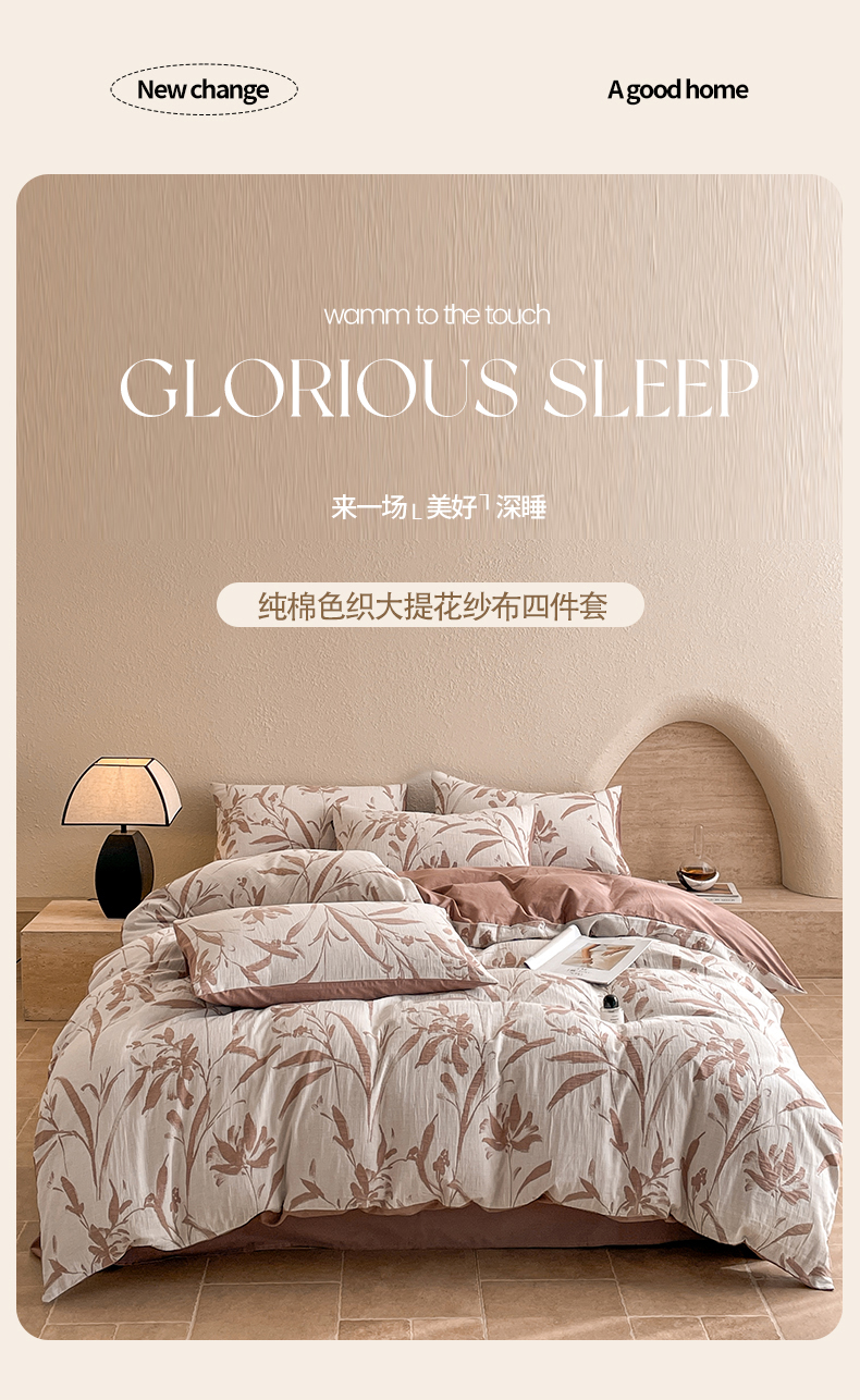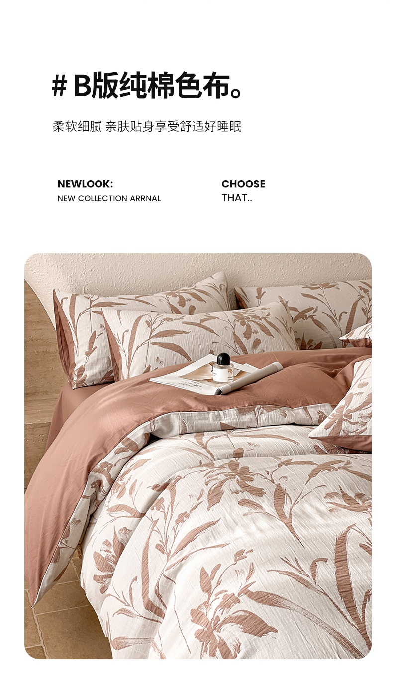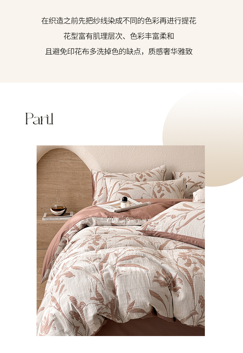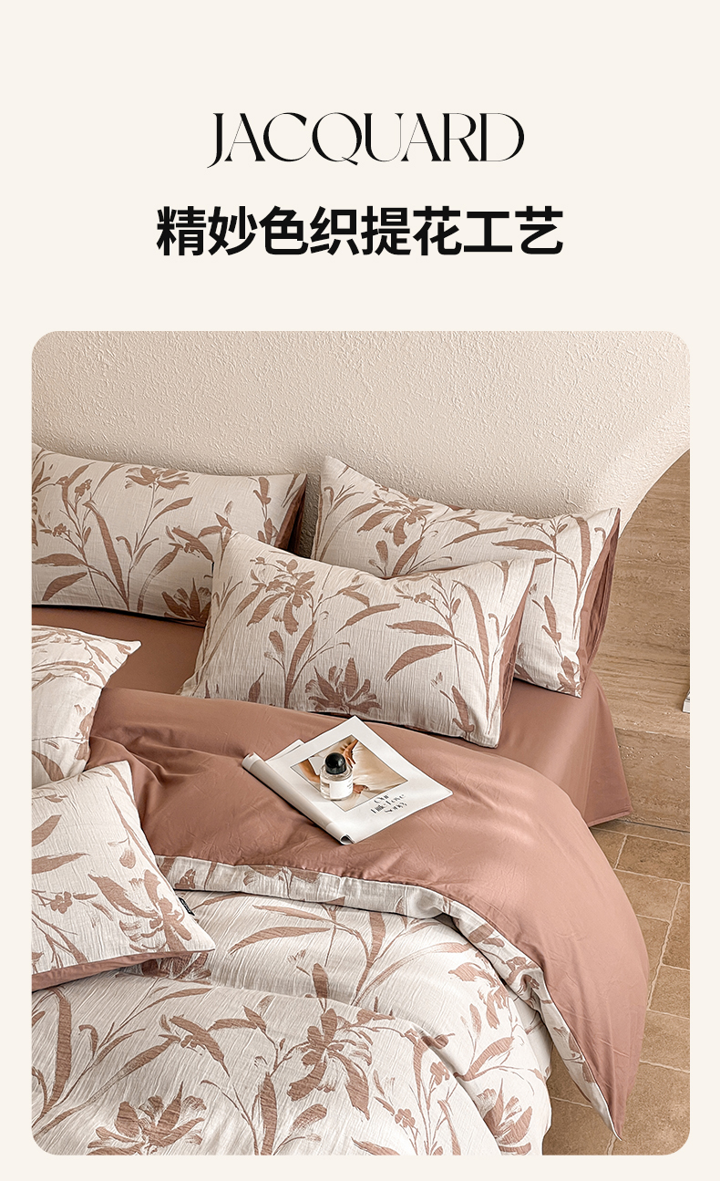 当前位置: 91家纺网 > 商品网购 > 床品套件 > 四件套 > 全棉普通四件套 > 宜代光年 2026新款全棉纯棉60S水洗棉三层纱色织提花四件套系列(经典保留花型) 林逾静-橘