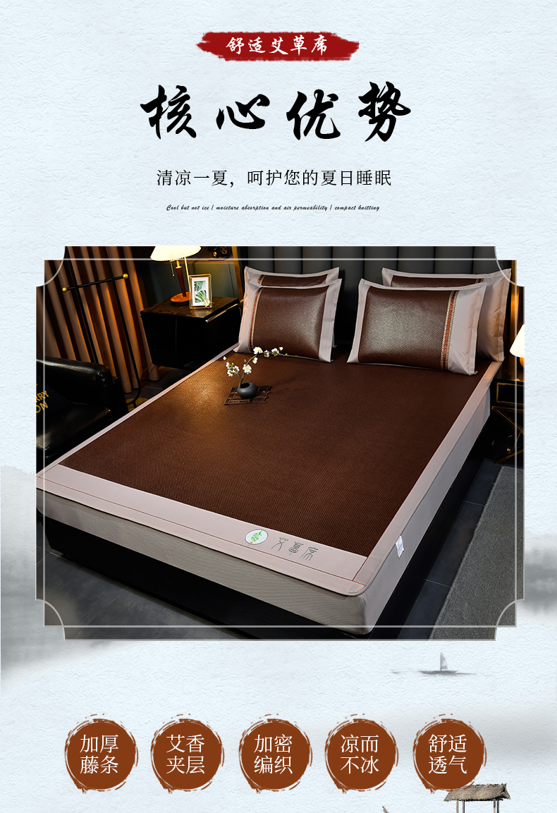 当前位置: 91家纺网 > 商品网购 > 床上用品 > 凉席 > 其他凉席 > 小牛席业 2026新款加厚款-经典艾草养生席(床笠款) 艾草养生席-床笠款-黑咖