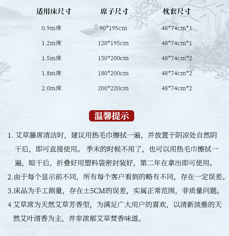 200x220cm单凉席+枕套一对 | ¥120.00 |
