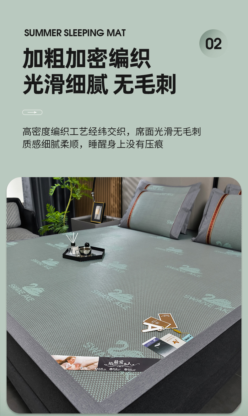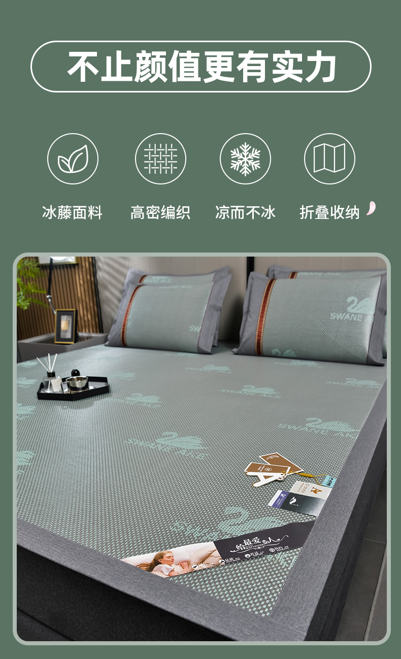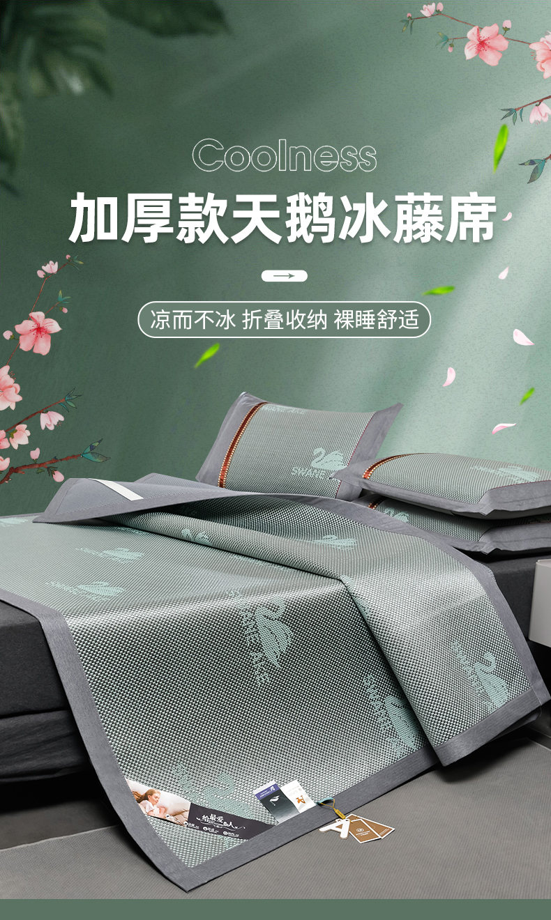 当前位置: 91家纺网 > 商品网购 > 床上用品 > 凉席 > 其他凉席 > 小牛席业 2026新款加厚天鹅冰藤席系列 加厚款-天鹅冰藤席(绿色)