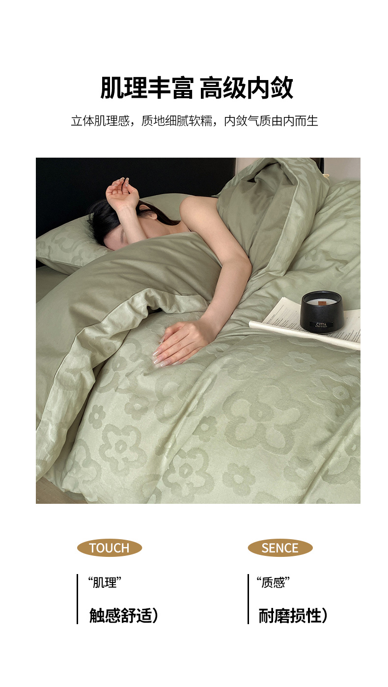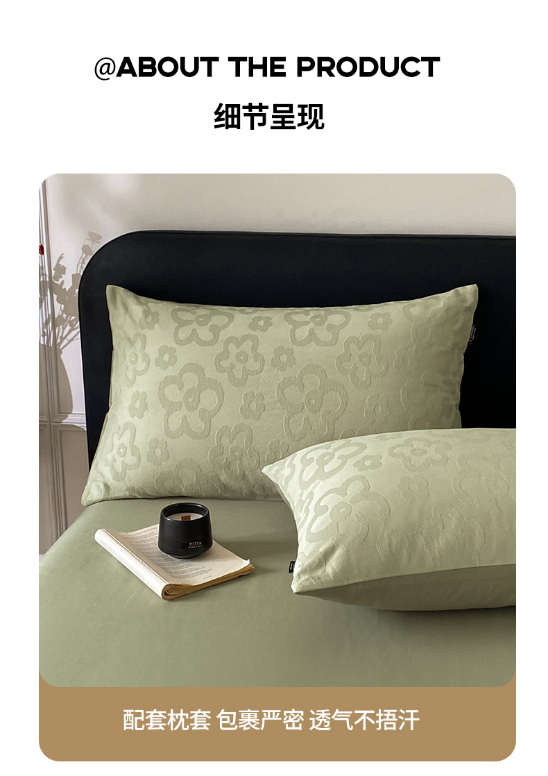 当前位置: 91家纺网 > 商品网购 > 床品套件 > 四件套 > 全棉普通四件套 > 宜代光年 2026年新款全棉纯棉厚织提花四件套系列(第一批花型) 朵朵-浅绿