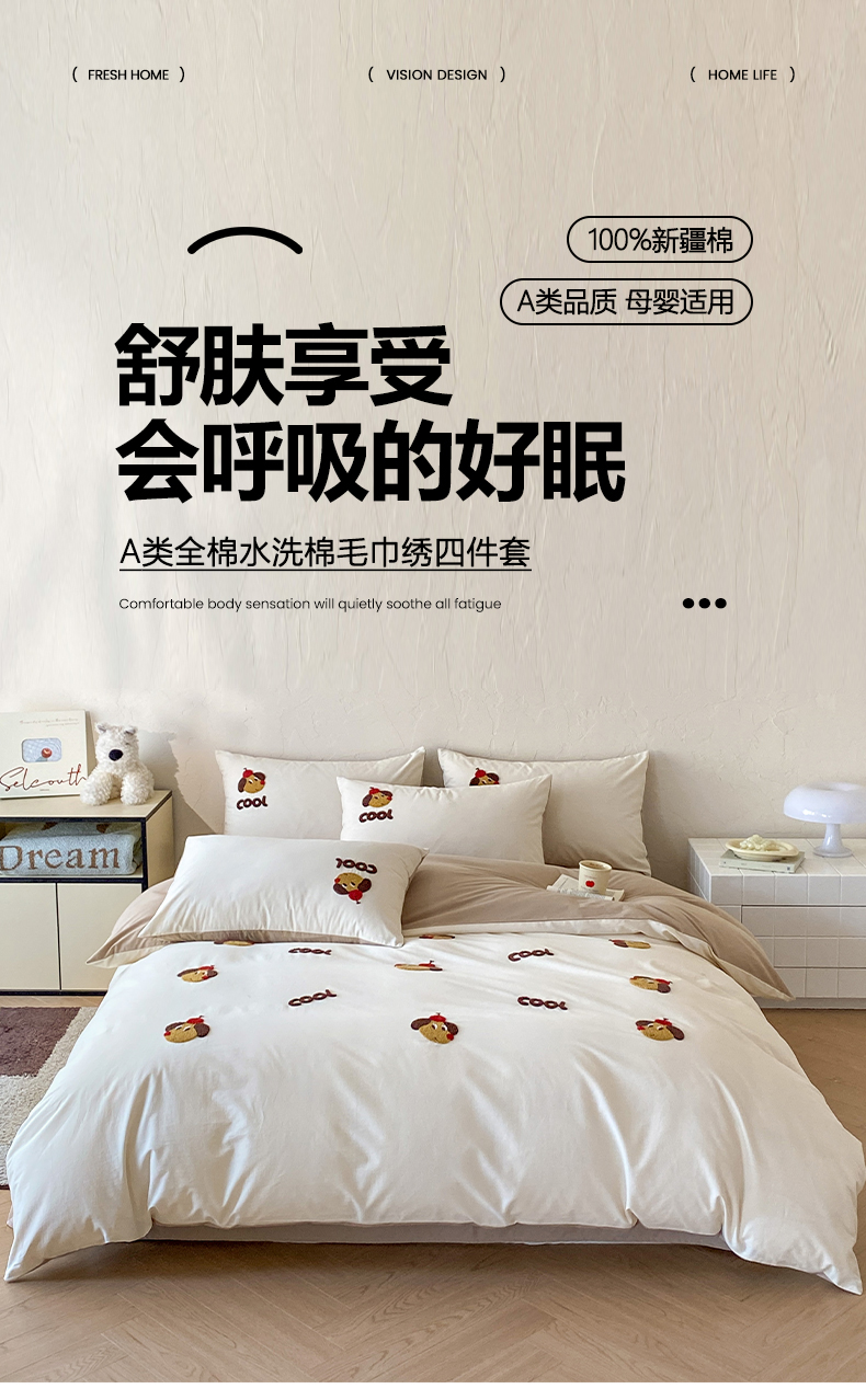 (总)拼社家纺 2026新款A类母婴级全棉纯棉水洗棉四件套毛巾绣纯棉四件套床上用品提供买家秀